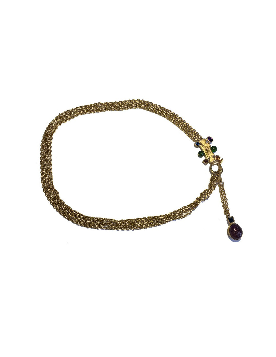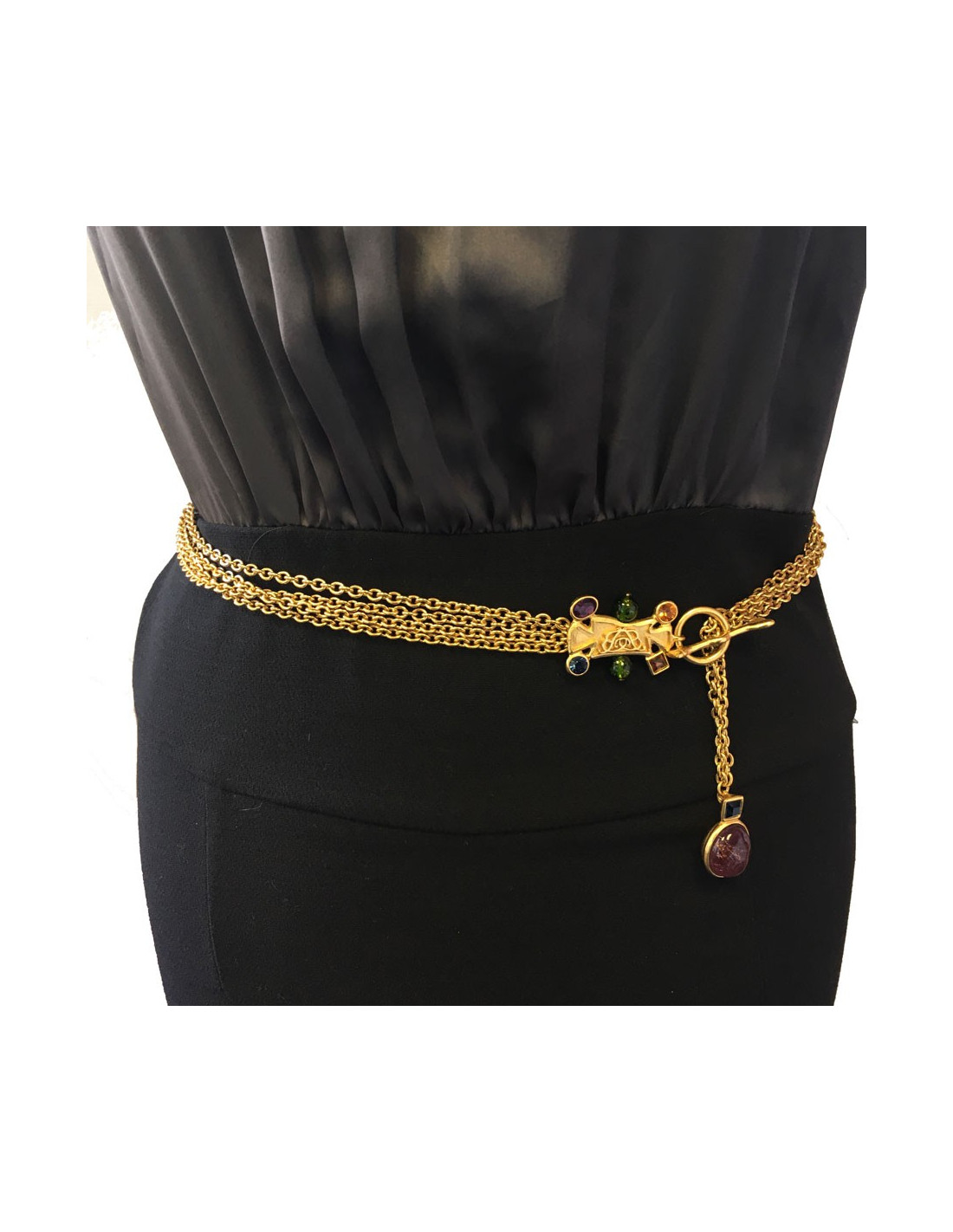 BALENCIAGA belt in gilded metal chain, rhinestones and resin