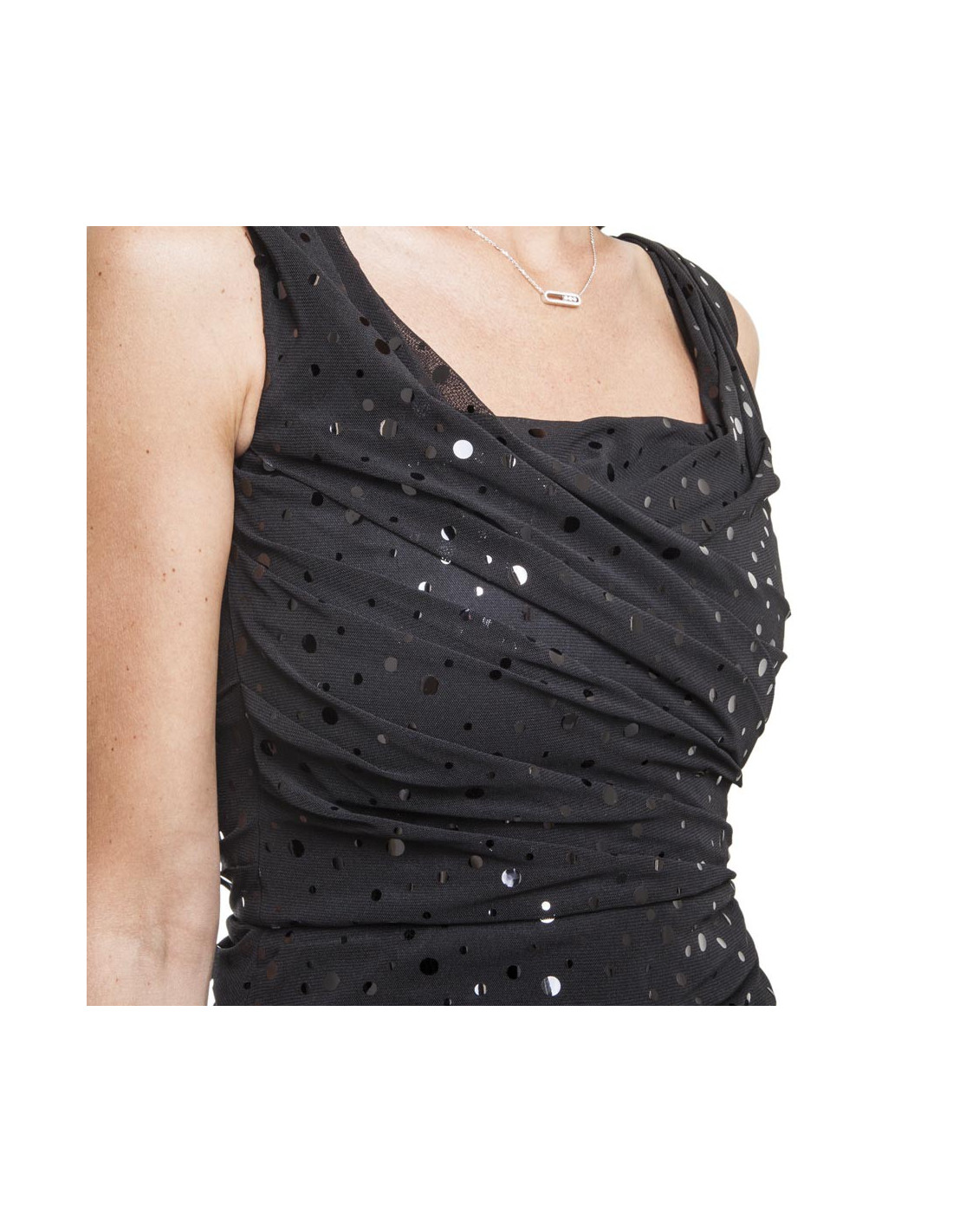 Last items in stock DRESSES PACO RABANNE dress size 36FR PACO RABANNE 19136 690.00 € Paco Rabanne black dress Condition: never worn Size: 36FR Materials: polyester Colors: black Lining: black Measurements: underarm 49cm, waist 49cm, height 80cm Details: Black short sleeve polyester dress. English embroidery with a smooth black lining. Add to cart