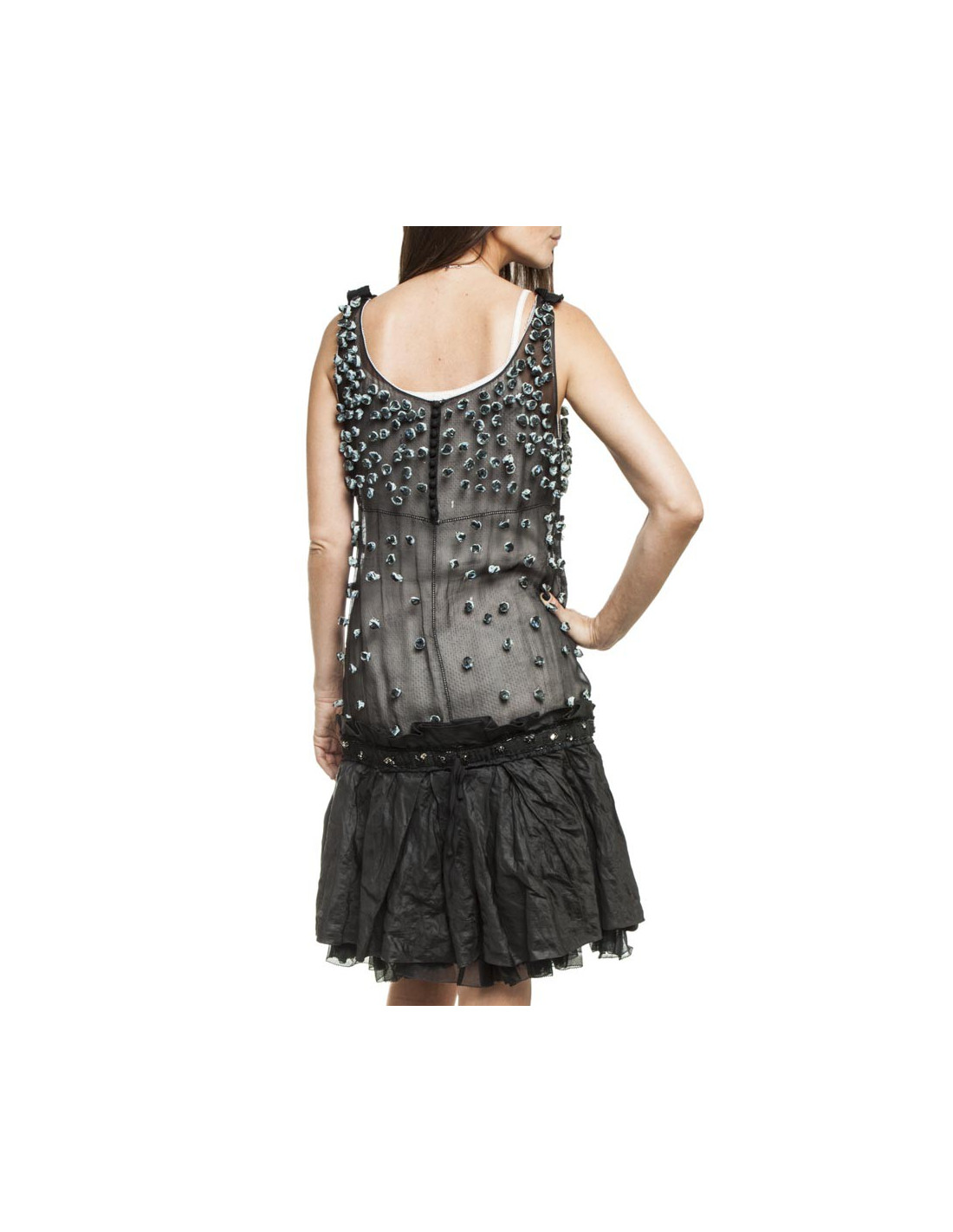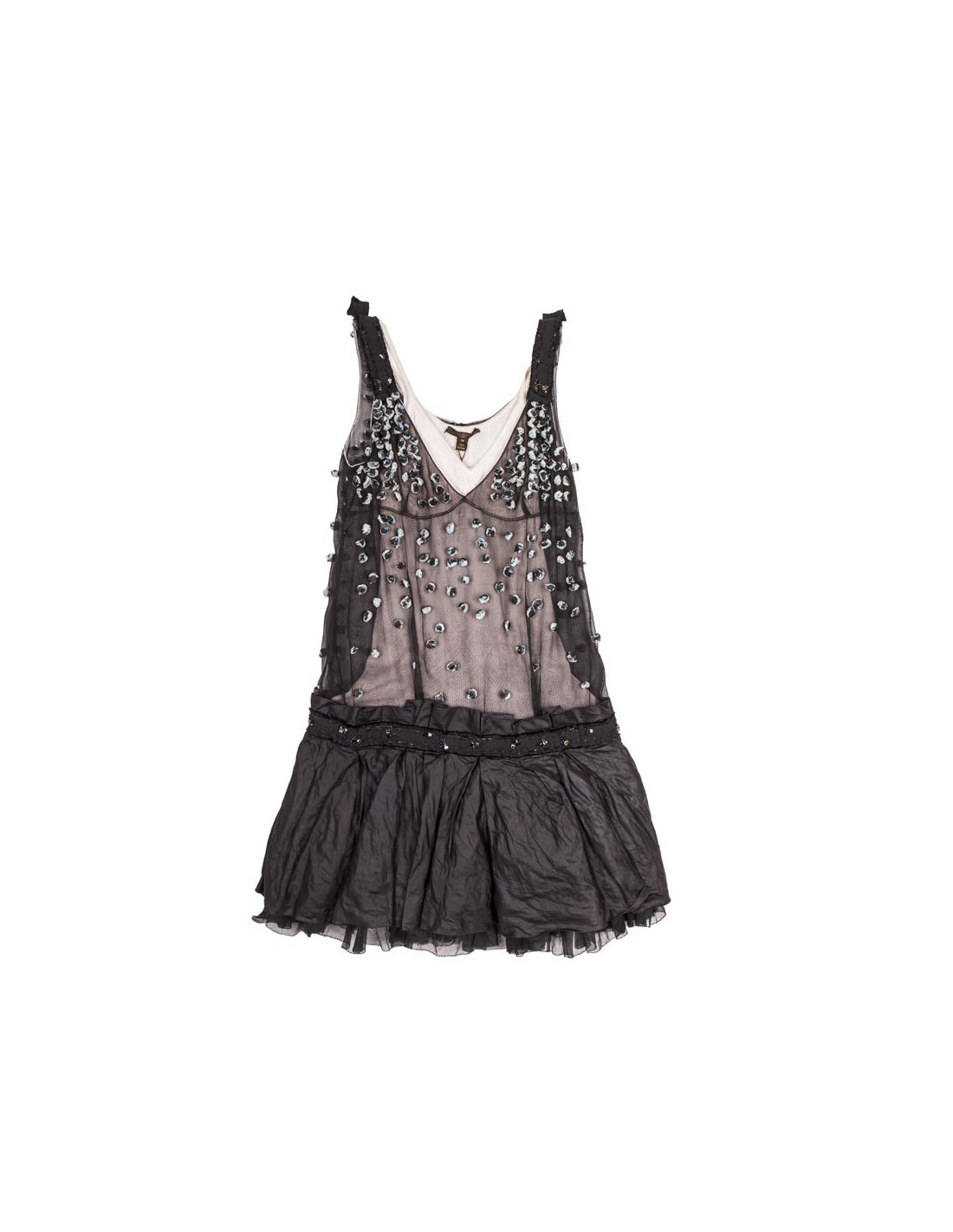 Details: Straight cut, flared at bottom. Pearl details on straps and waistband (adjustable) .