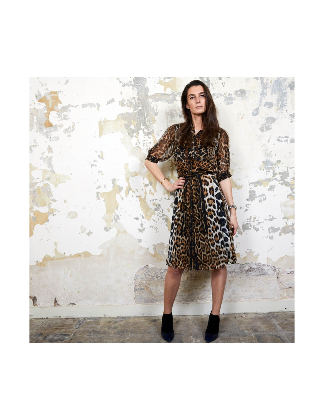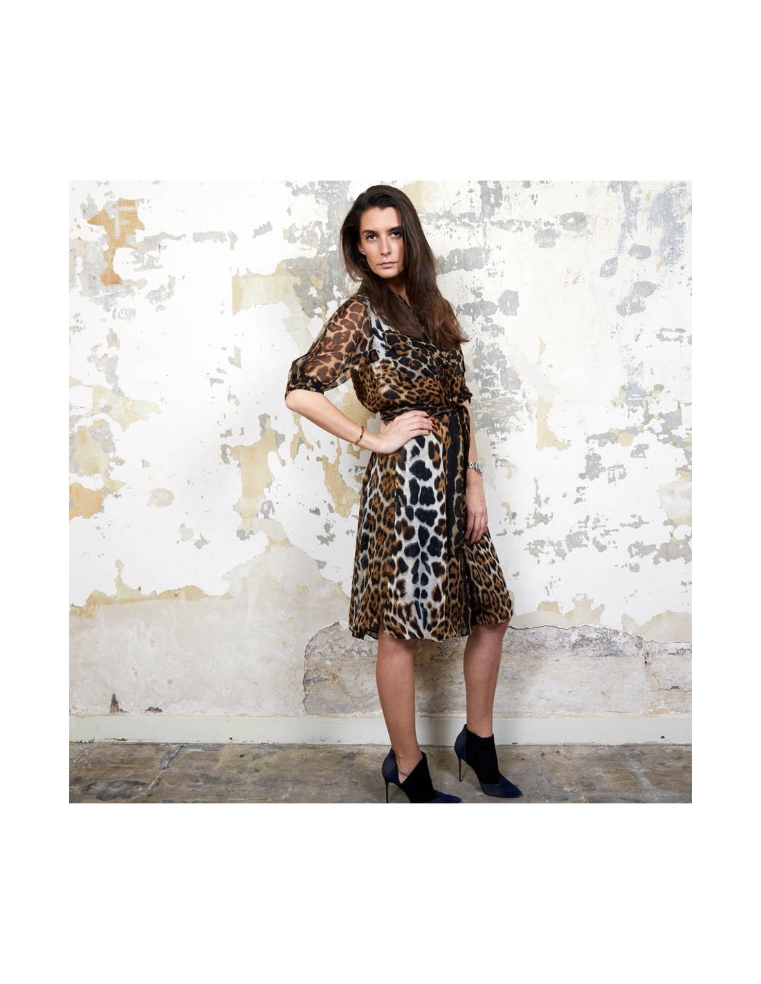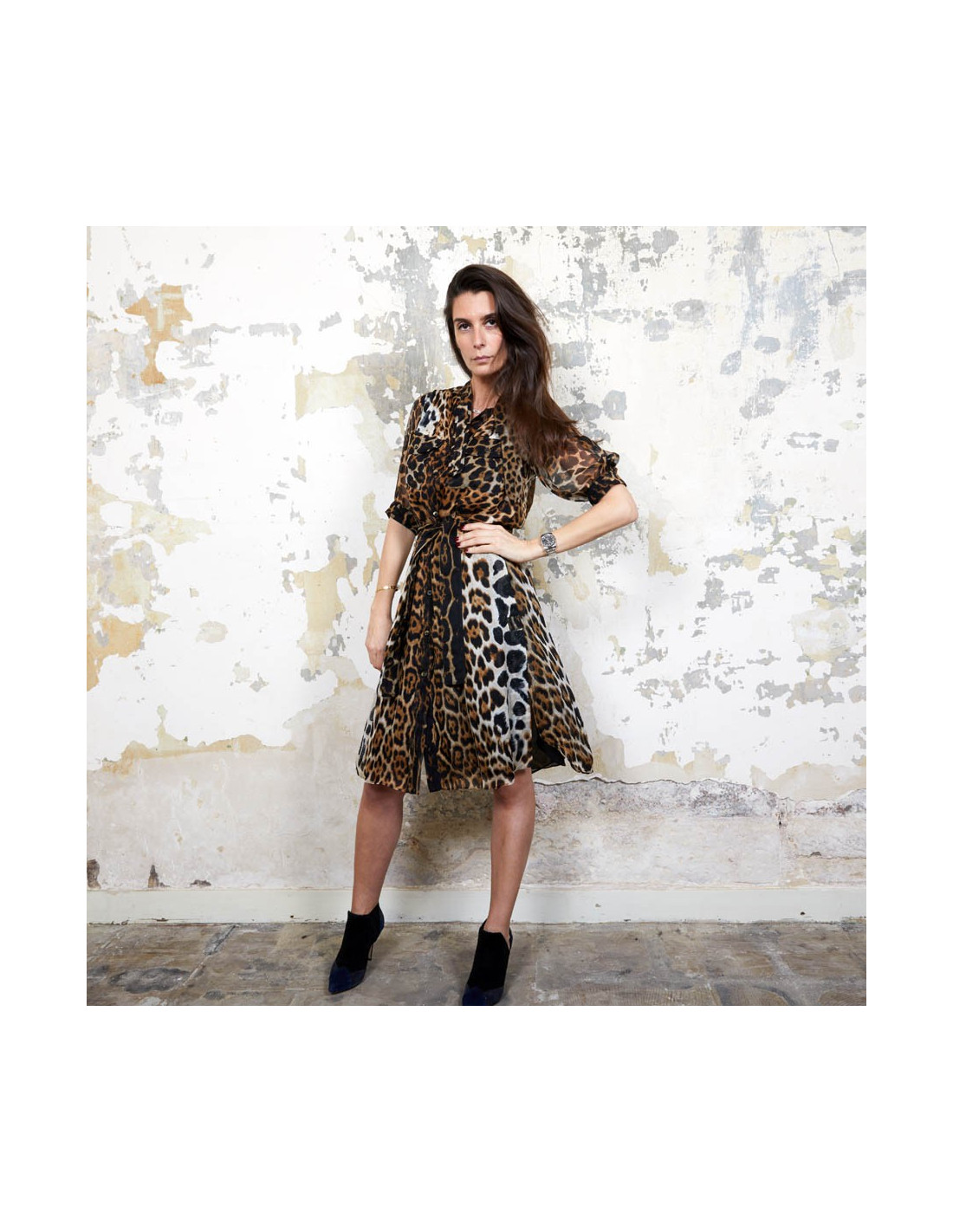 Yves Saint Laurent dress in leopard printed silk. Made in France. Size 36FR