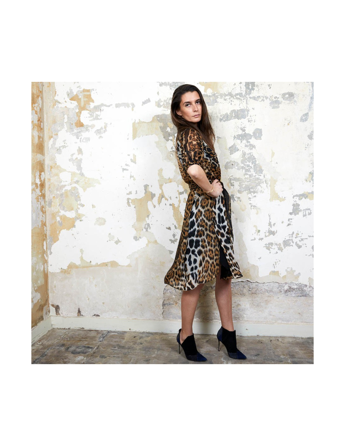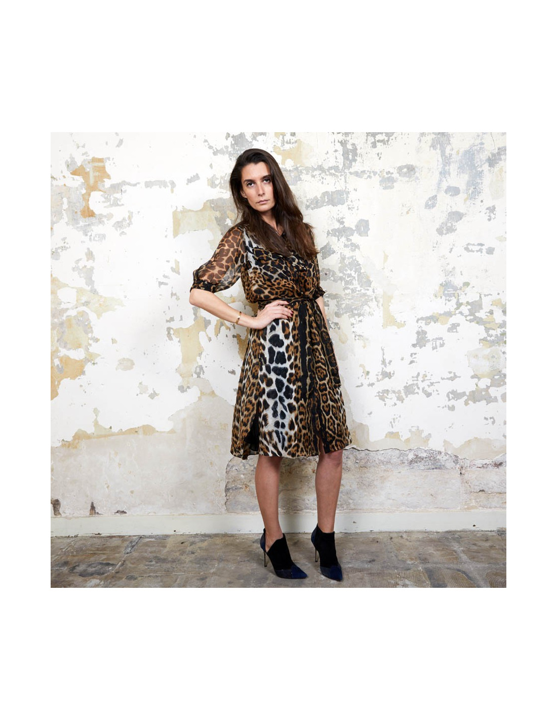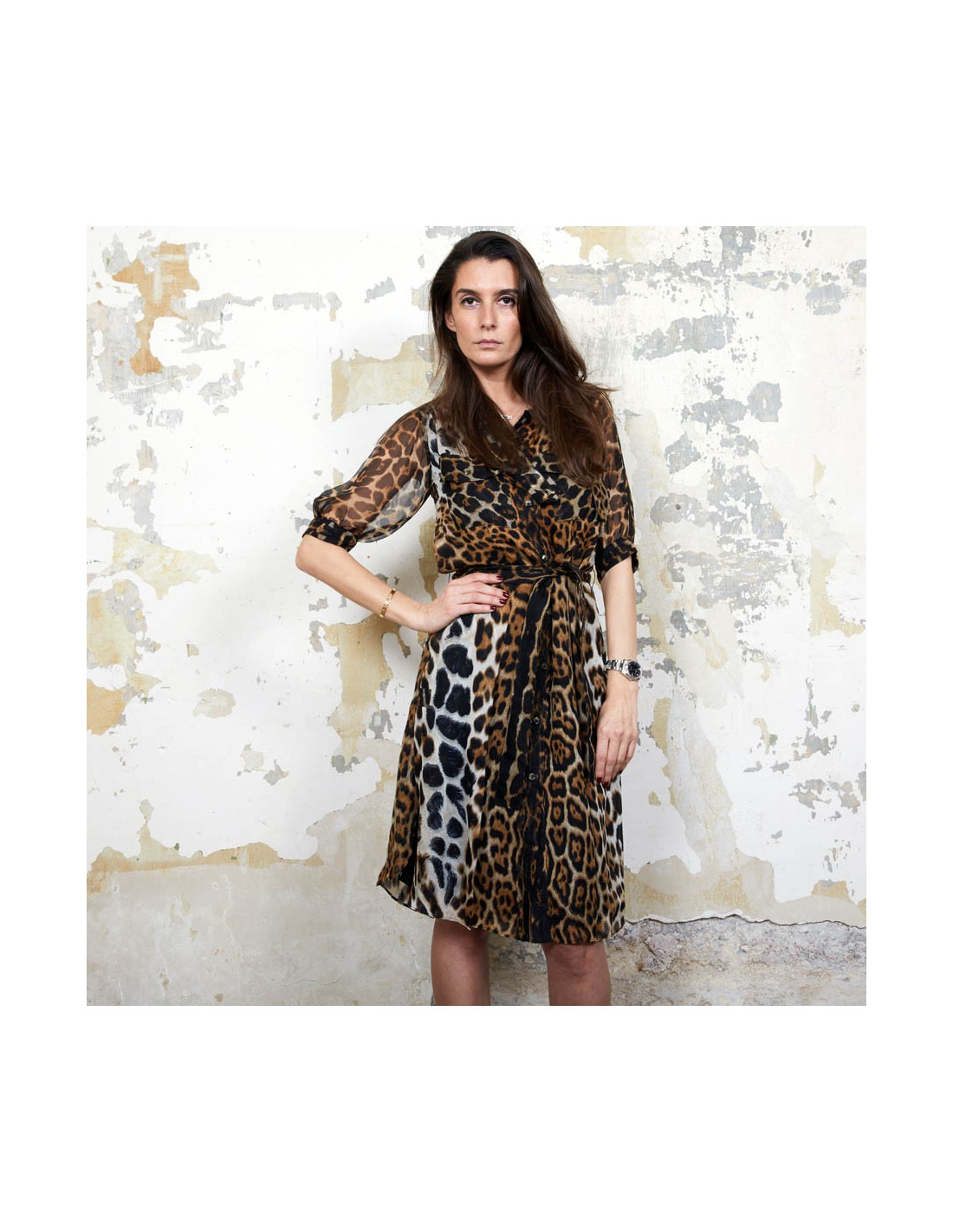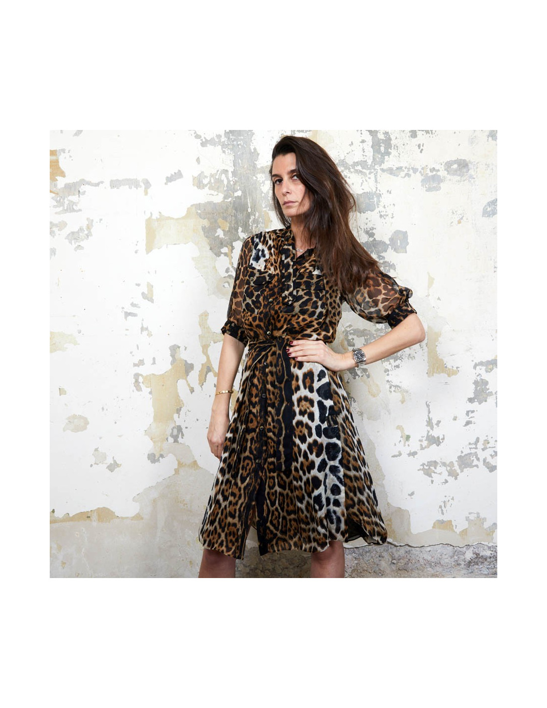YSL SAINT LAURENT dress in leopard printed silk size 36FR