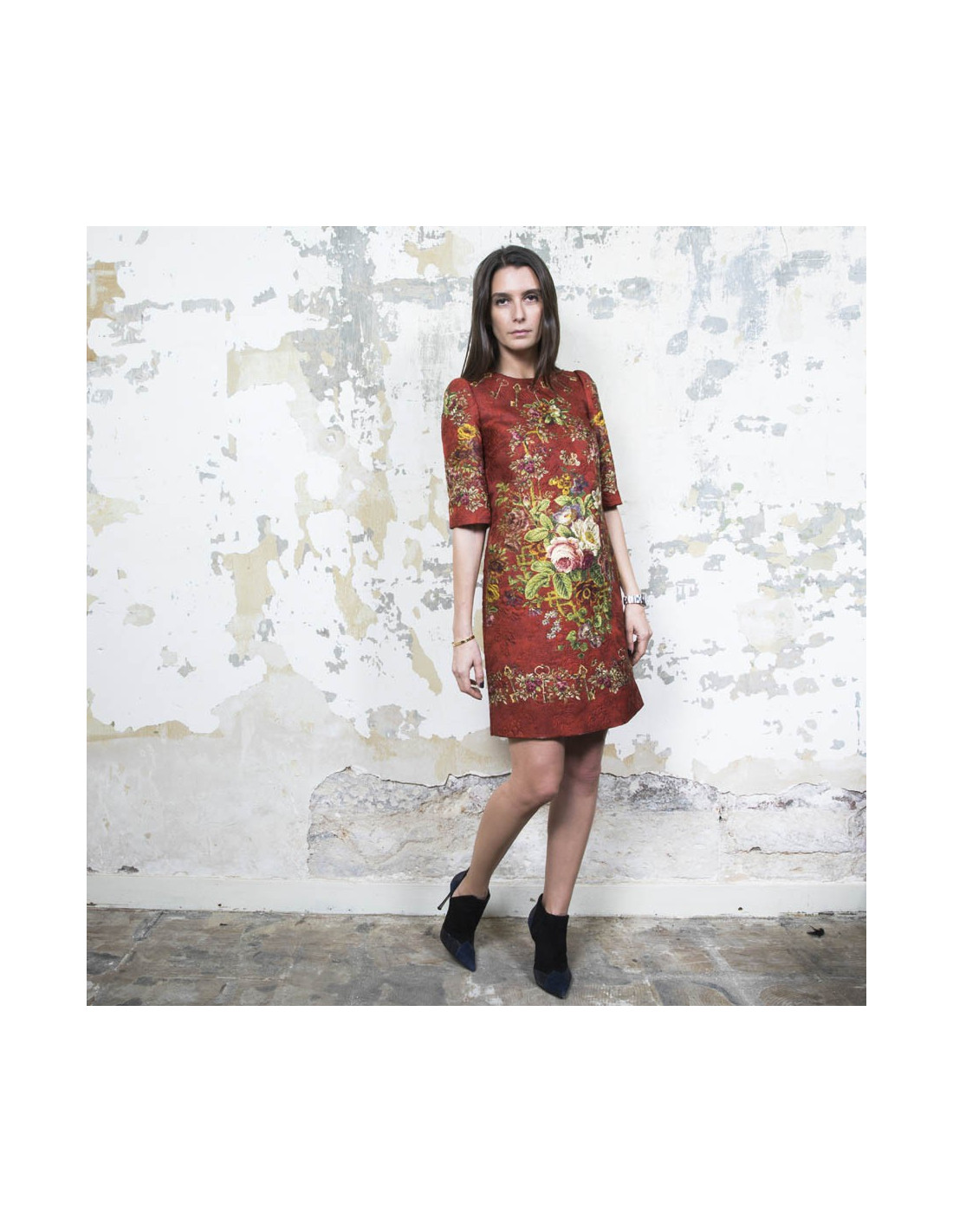 DOLCE & GABBANA T 36 dress with floral printed embossed polyester