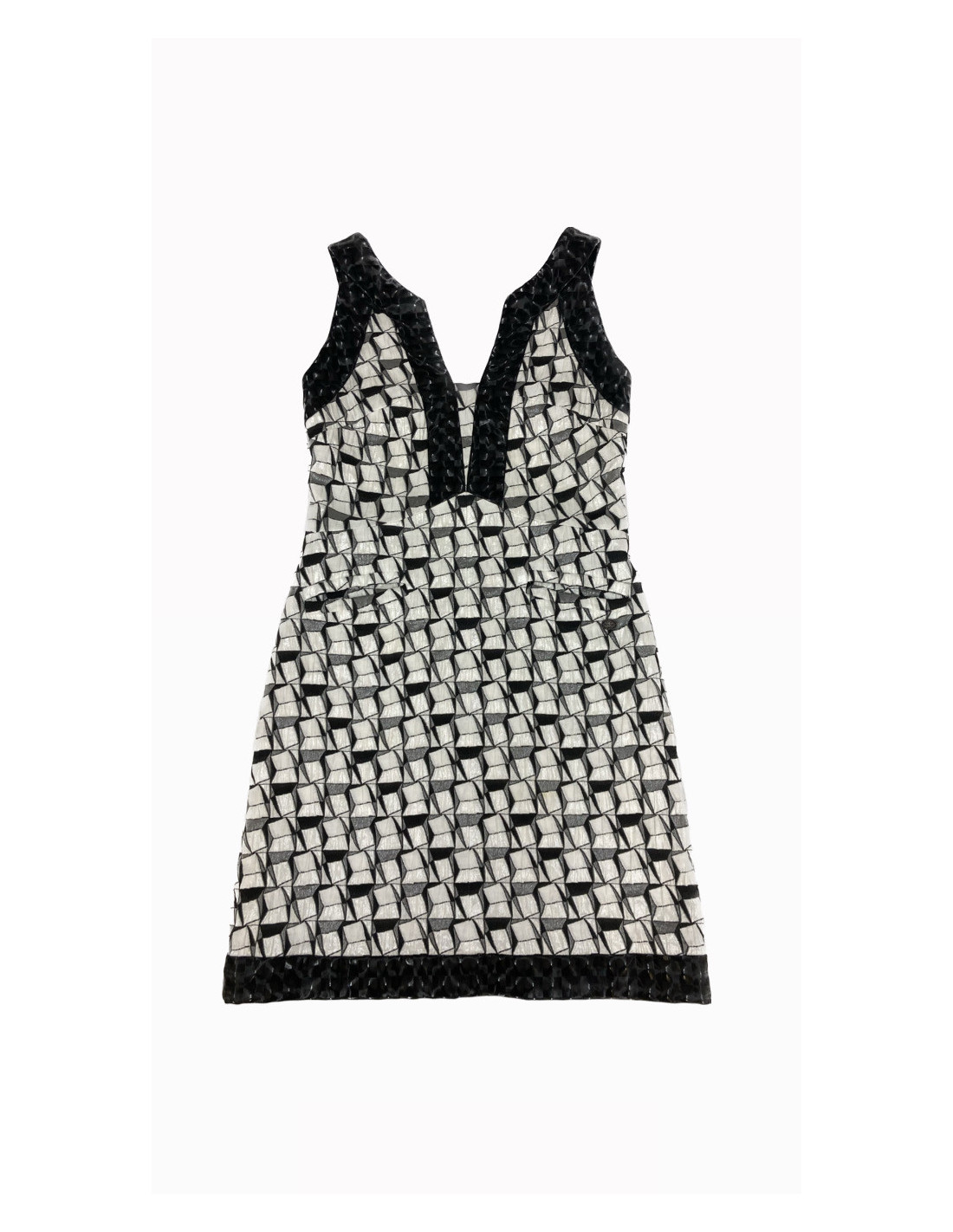 Last items in stock DRESSES CHANEL dress in black dress size 36FR CHANEL 19866 1,350.00 € CHANEL black dress in polyamide, extensible material. Size 36 FR. Recent collection. 2 pockets at the front. The lining is in black silk. In very good condition. Dimensions: shoulder drooping: 40 cm. waist 36 cm, height 96 cm. Will be delivered in a Chanel cover Add to cart
