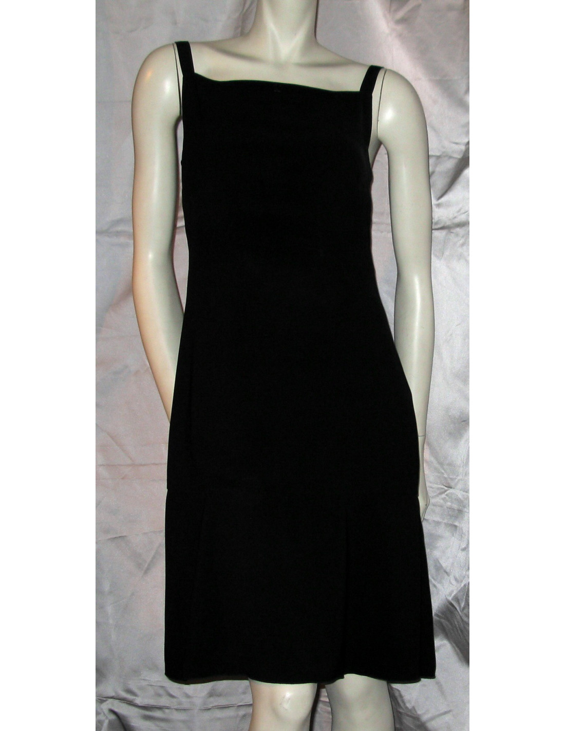 CHANEL dress in Black jersey. There is no size tag but it fits a size 38. There is a small CC black metal sewn on the front of the dress. It closes with a zip at the back, missing the small pull of the zipper. The lining is black silk.