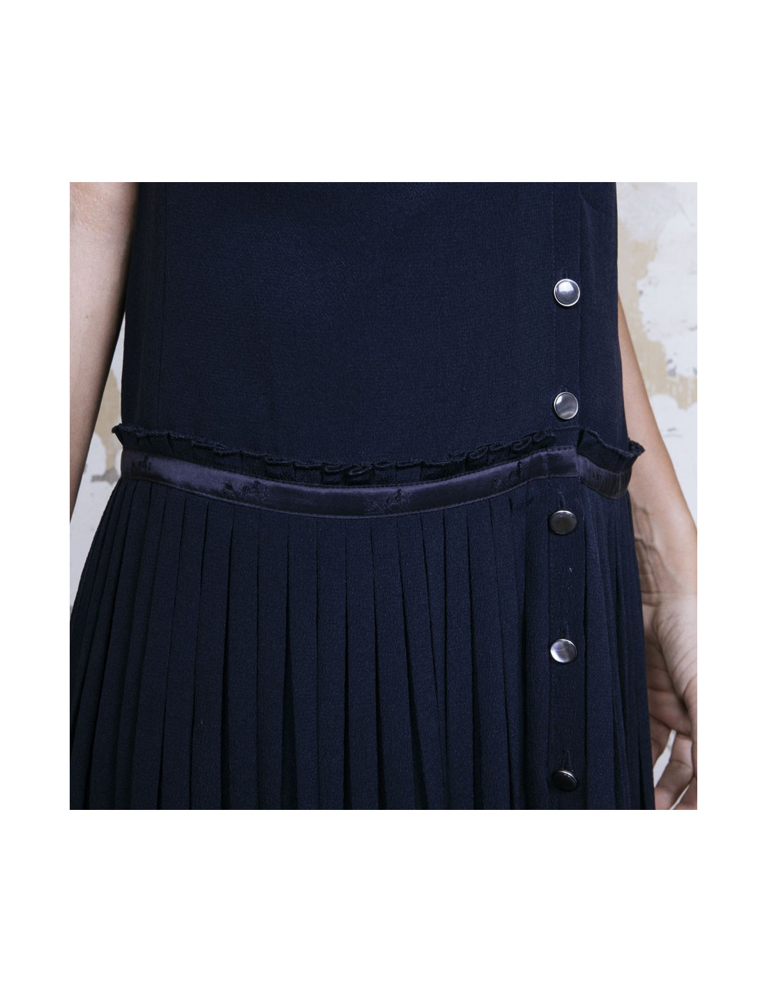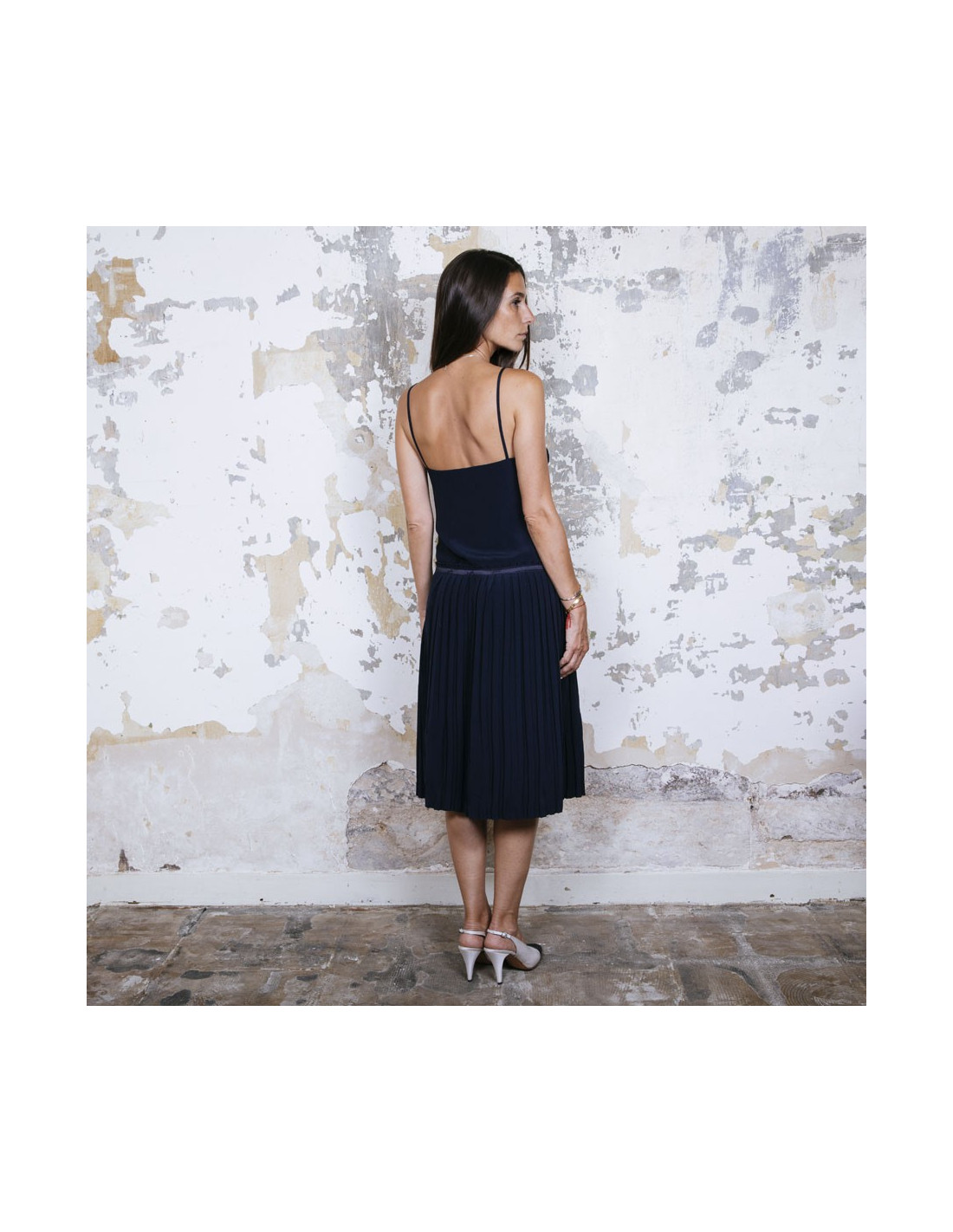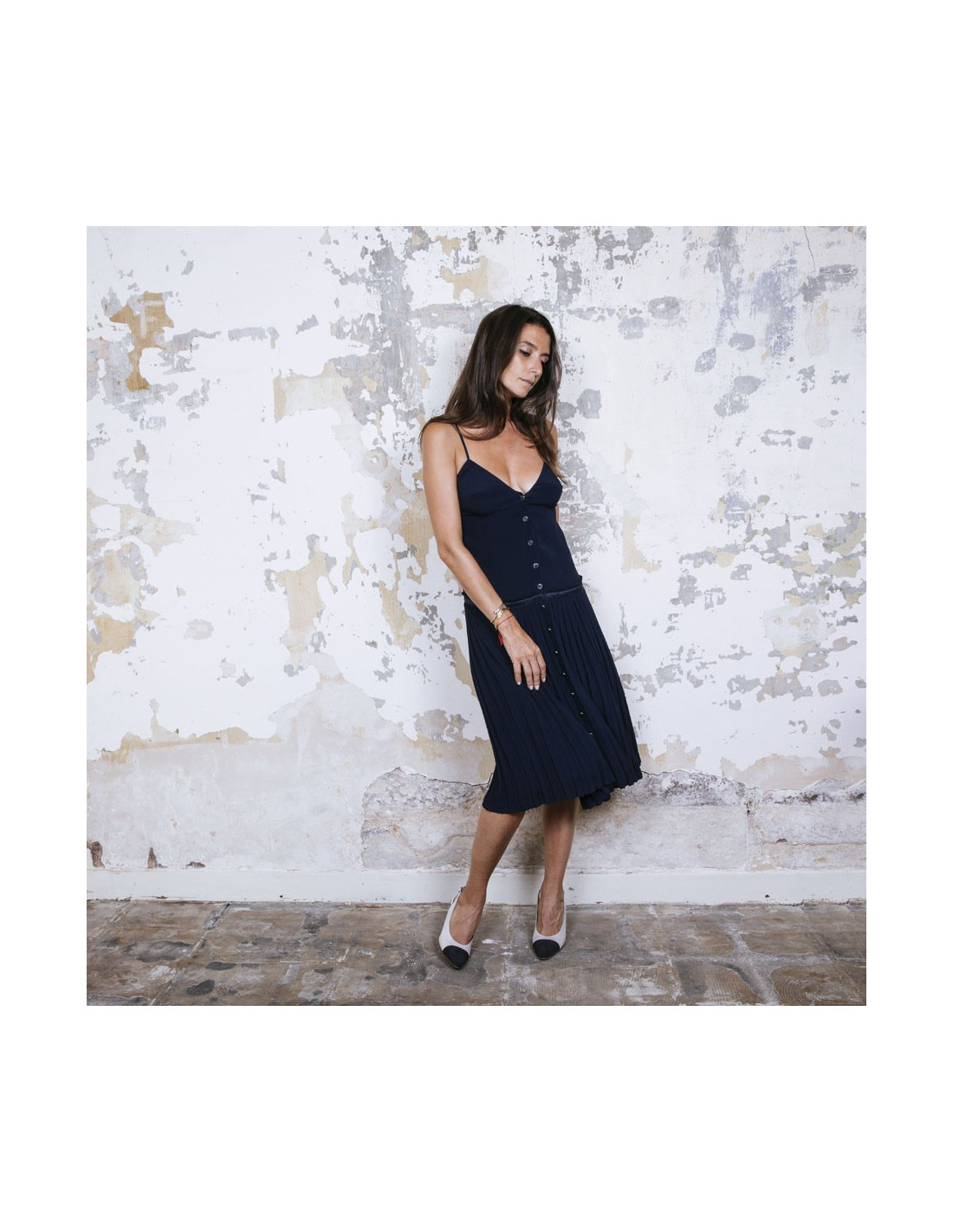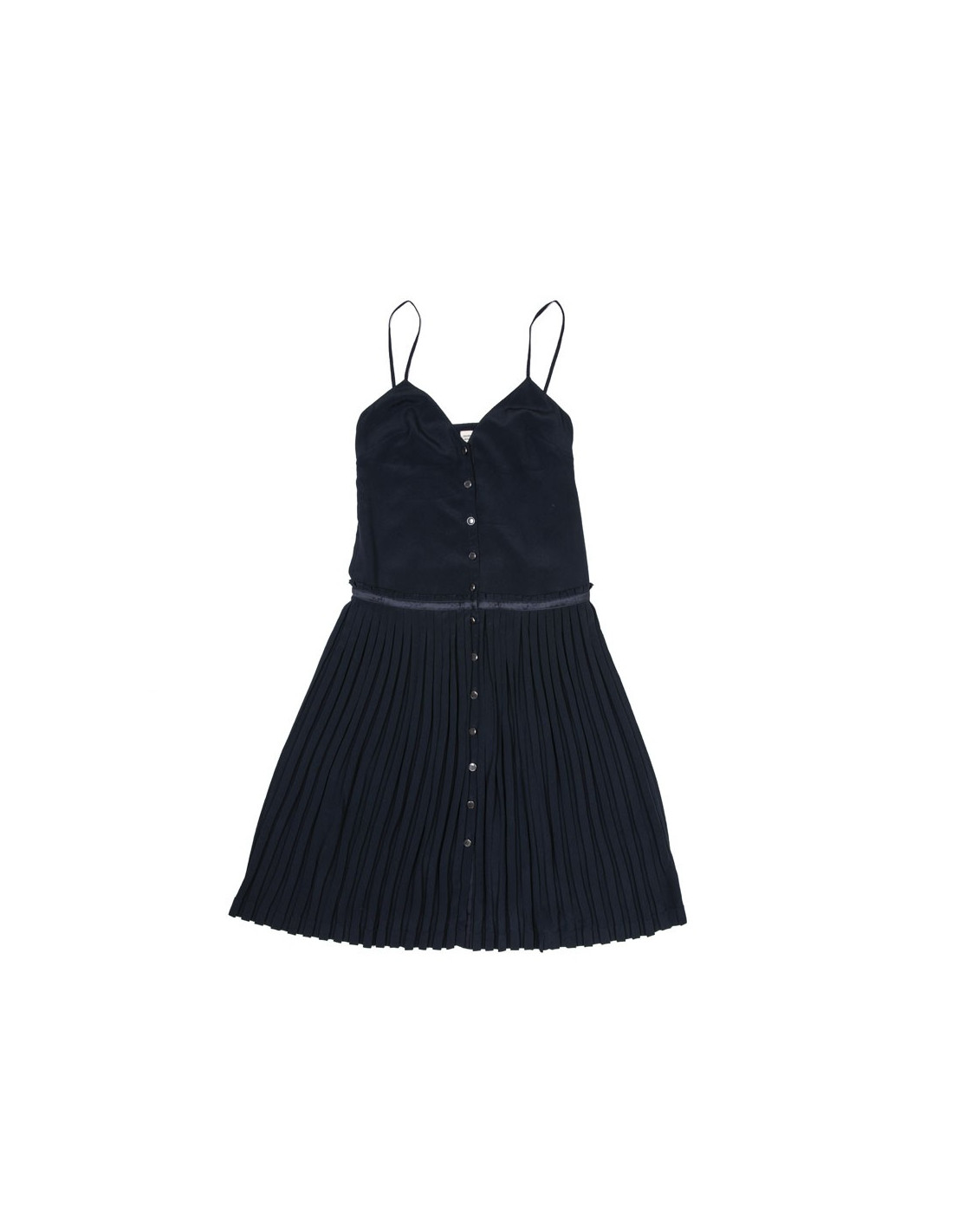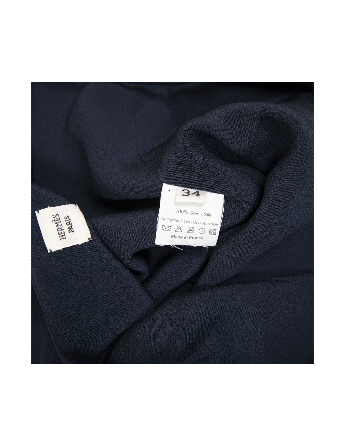 Hermès dress in navy blue silk with thin straps and buttoned on the front. Size 34.