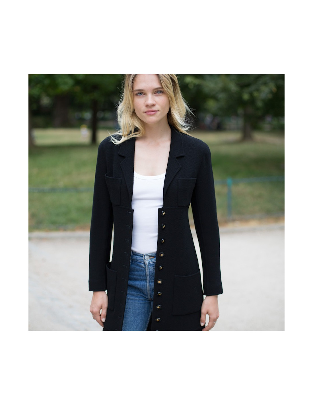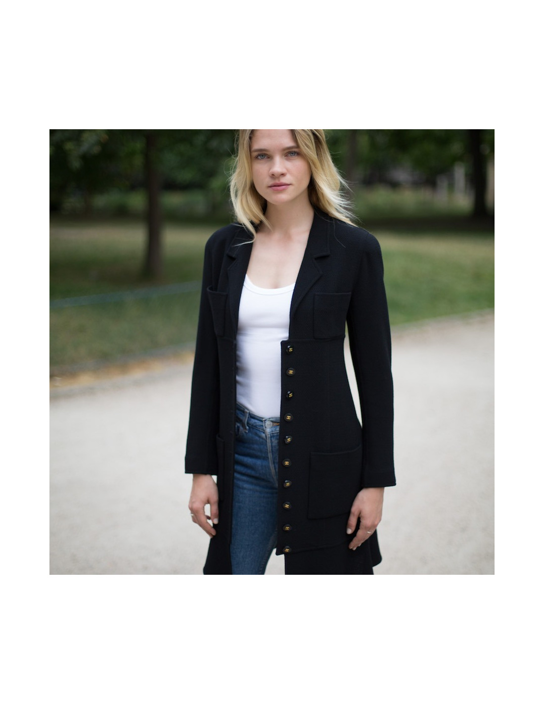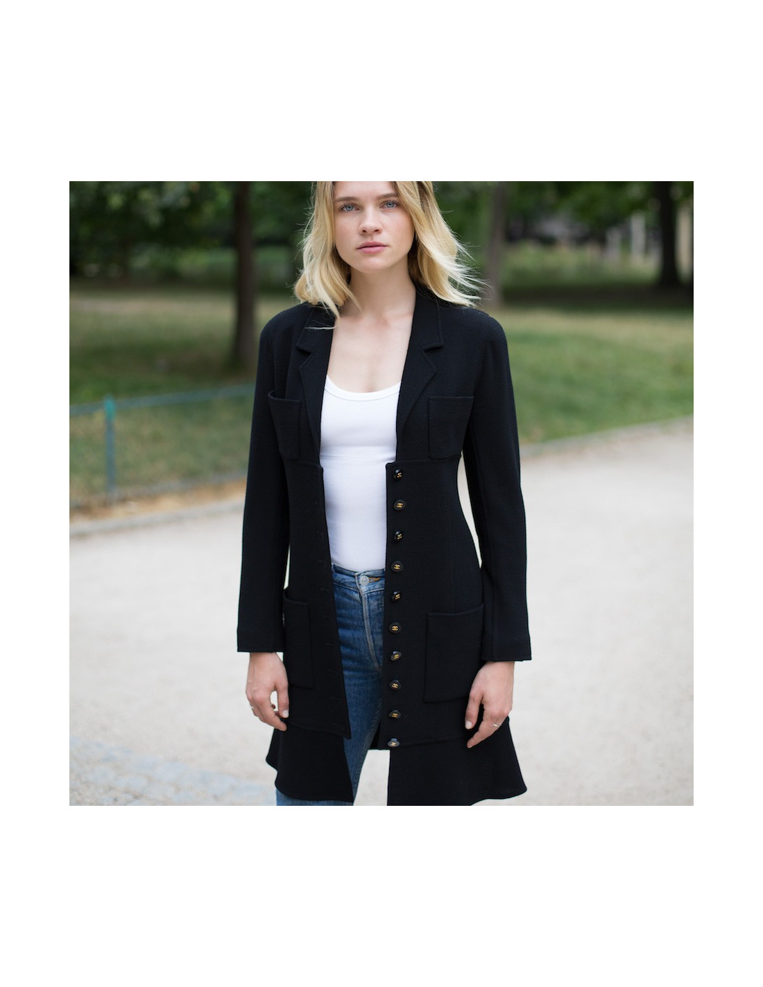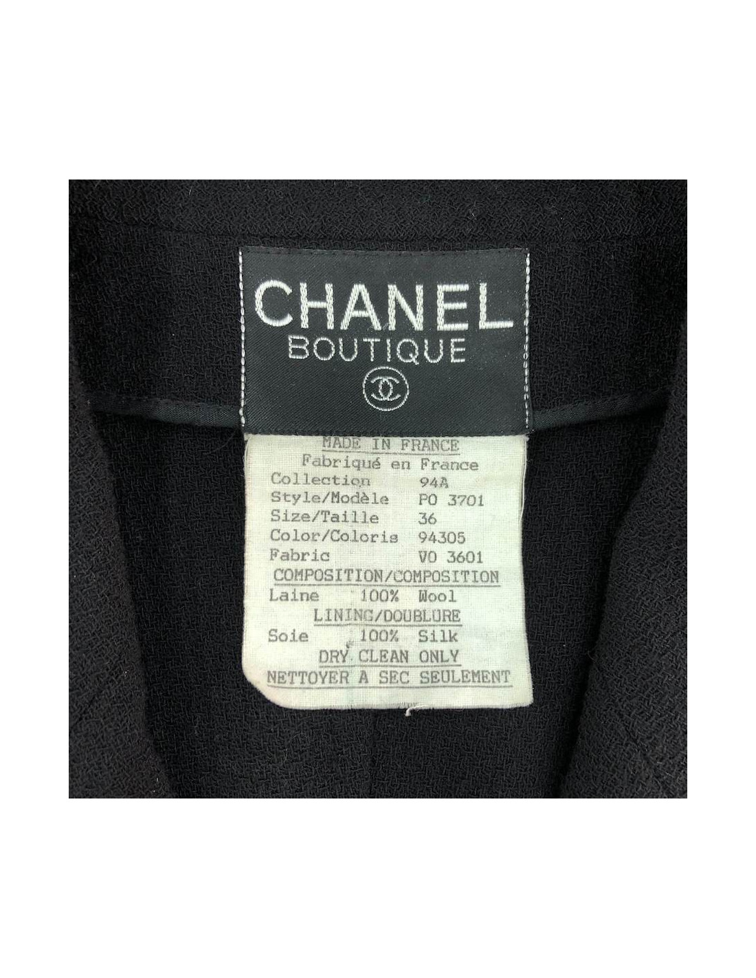 Last items in stock COATS-TRENCHS Dress coat CHANEL blue tweed T38 CHANEL 14150 3,200.00 € Dress-blue tweed coat Navy and white CHANEL, raglan sleeves, closed by a zipper. Spring 2008 collection, size 38. The lining is made of 100% silk Navy Blue monogrammee. marine blue tweed coat dress and white CHANEL size 38. The lining is fully 100% silk, in very good condition You can wear either dress or coat. This is the spring 2008... Add to cart