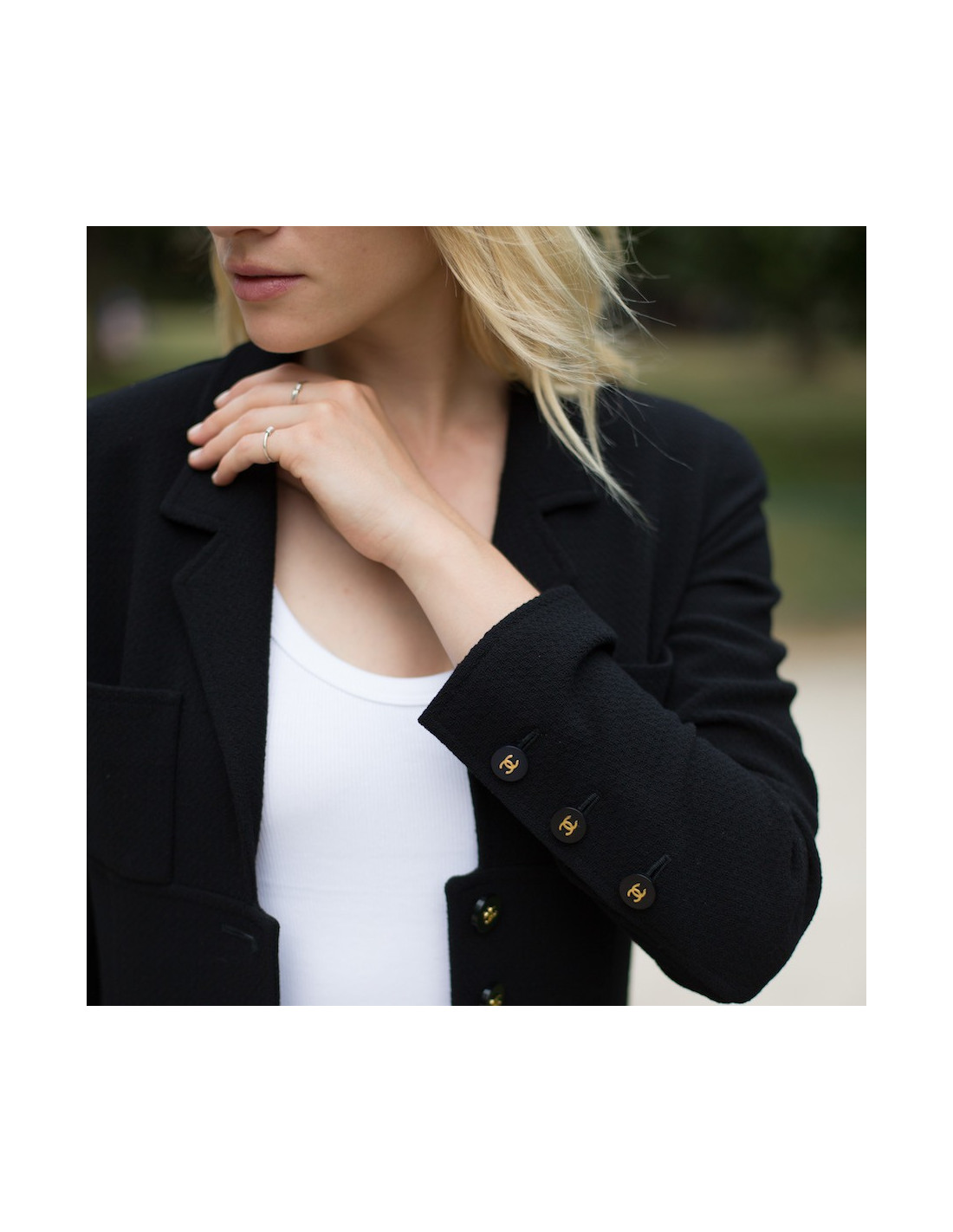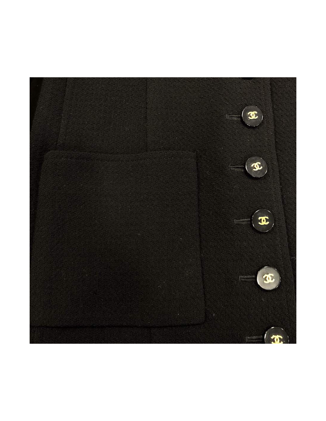 -250.00 € Sold DRESSES CHANEL T 38 tweed dress black and white CHANEL 16659 685.00 € 935.00 € Dress black and white Chanel T 38, with neck and edges of the black sleeves. Tweed wire and perforated cotton fabric. Round neck. Two front pockets. The dress fitted with zipper on the back. ' balances s. Very good condition. Shoulder width: 38 cm, chest: 42 cm, size large hips: 47 cm, height: 95 cm, sleeve length: 12 cm. View