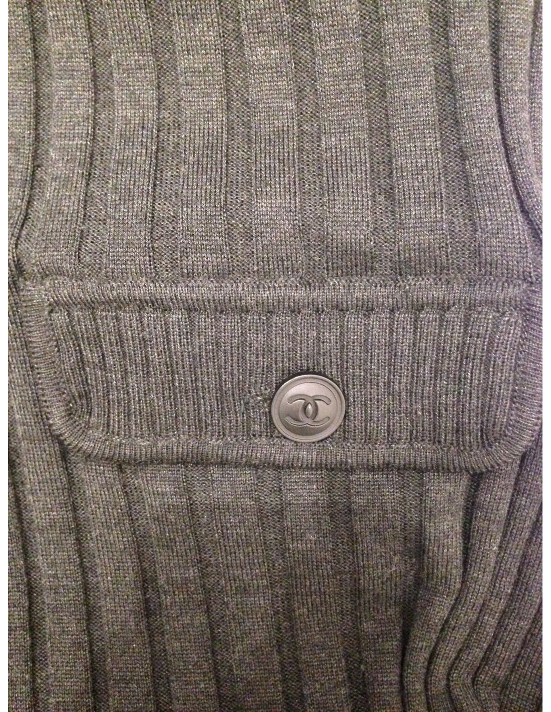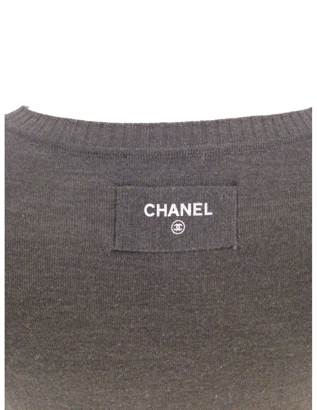 Black CHANEL dress, size 44. The composition is 70% wool and 30% silk. This elastic long-sleeved dress has two pockets adorned with buttons black acronyms CC. The top of the dress in a pullover spirit is very modern. On the back of the dress is a stitched label on which is inscribed "CHANEL". 'Good status' because fabric very slightly bouloché in some places.