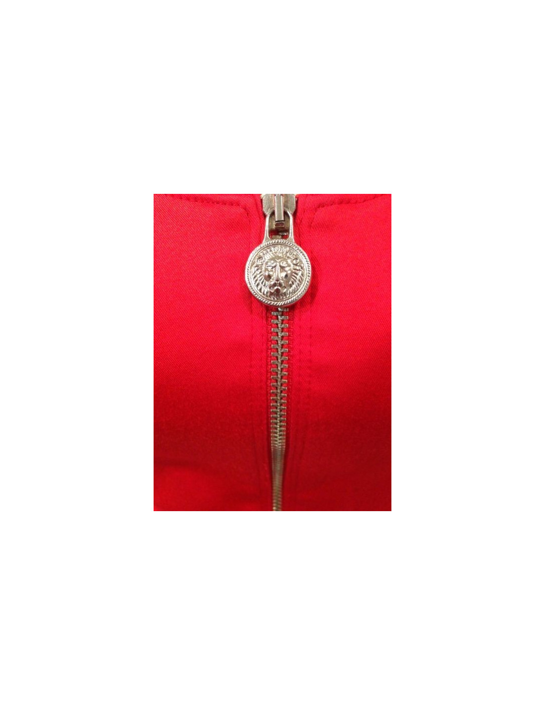 Short red VERSUS dress, size 30/44 (IT), of the House Gianni Versace. Corset dress with straps with opening in fermture Flash (zip Lampo) with coat of arms in the form of lion (the trademark symbol). Small slot on the back.