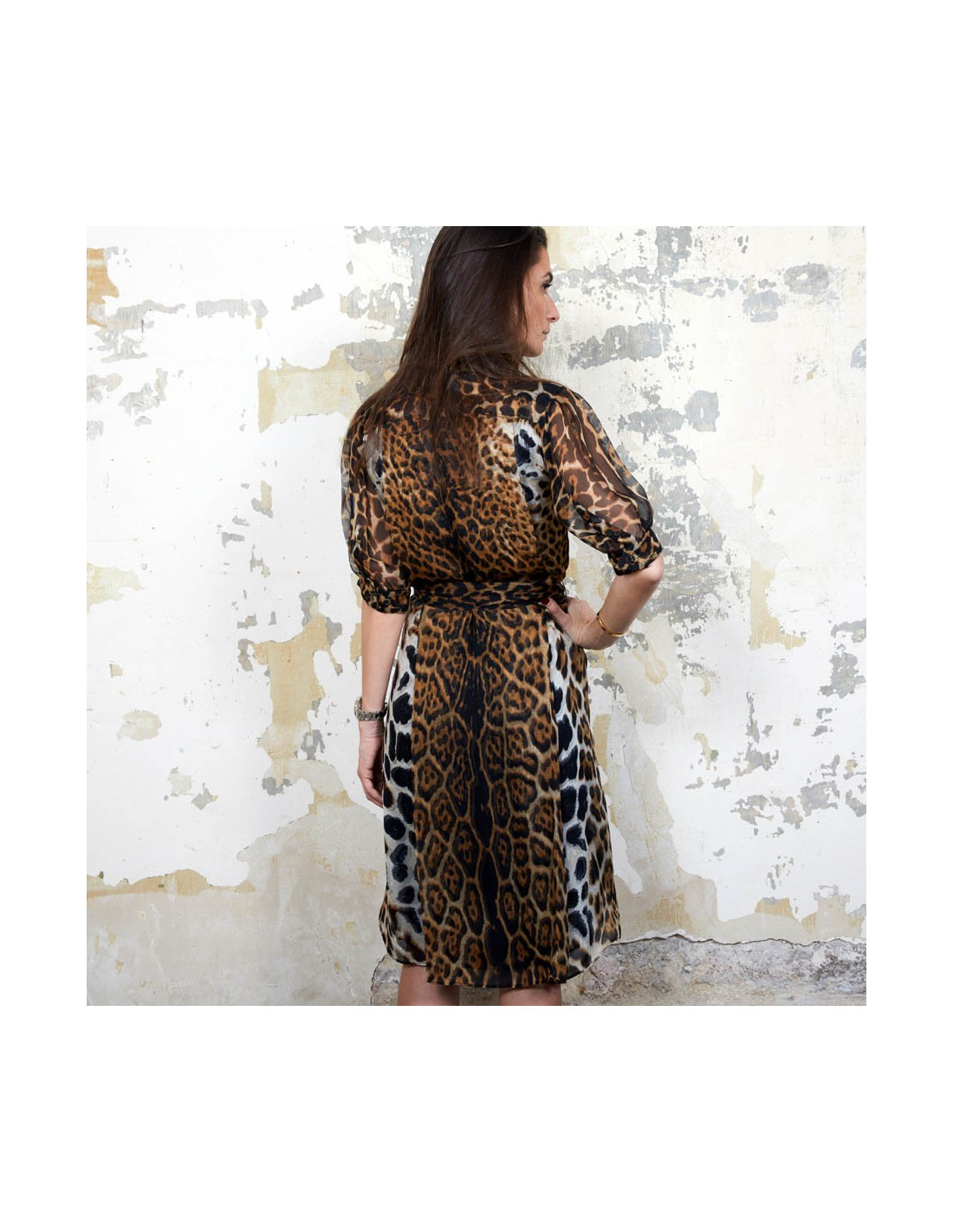 YSL SAINT LAURENT dress in leopard printed silk size 34FR