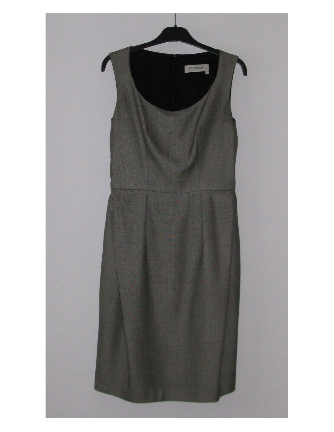 Dress T38FR Yves Saint Laurent grey, rounded collar, sleeveless, length below the knee, adjusted line by 2 clips at the front and 2 at the back. Horizontal line turn everything from size to your silhouette in value. Long zip closure to the "invisible" added back a small slit at the back at the bottom. Composition: 80% wool, 20% silk.