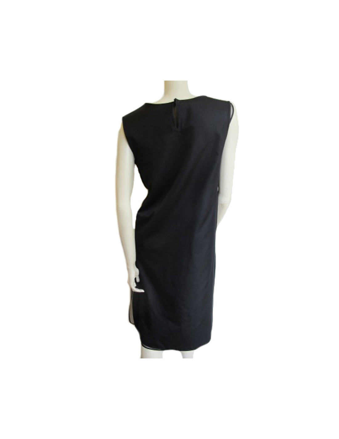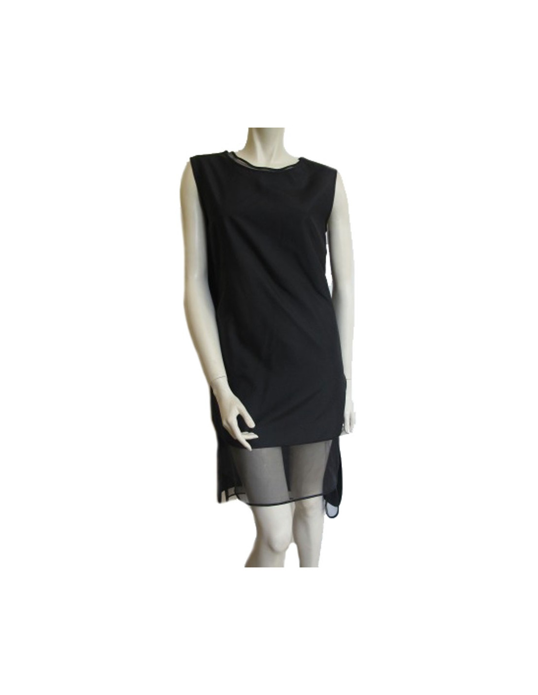 One word! Sophisticated! Dress Giambattista Valli black, round-neck, sleeveless, straight cut. Closing at the top of the back by a buttonhole. Longer asymmetric dress on the back with a removable and asymmetrical inner liner in black veil longer at the front. Opportunity to wear this pretty dress without lining (see photo). Size 40fr.
