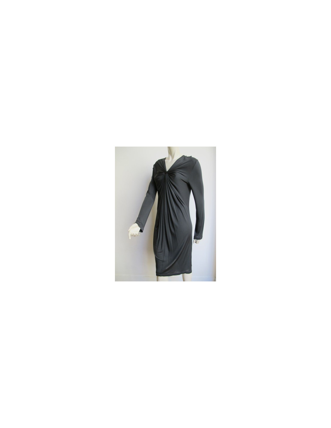 Very pretty! Dress Sophia Kokosalaki very dark green nicely gathered at the front, V neck, long sleeves. MI-longue, fluid. Size 40fr
