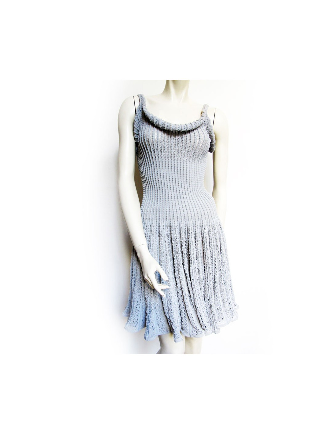 Timeless dress ALAÏA T XS, beautiful room Tightened to stretch how size and the bottom of the dress is flying way embroidery lace. It closes with a zip in the back. 50% cotton, 25% viscose/rayon, 20% Nylon, 5% Polyester Public price: 3000 EUR In good condition. Its original label is supplied with. Height: 92 cm, Width at the level of the chest: 33 cm, Size width: 27 cm Hip width: 39 cm, Width at the bottom of the dress: 131 cm