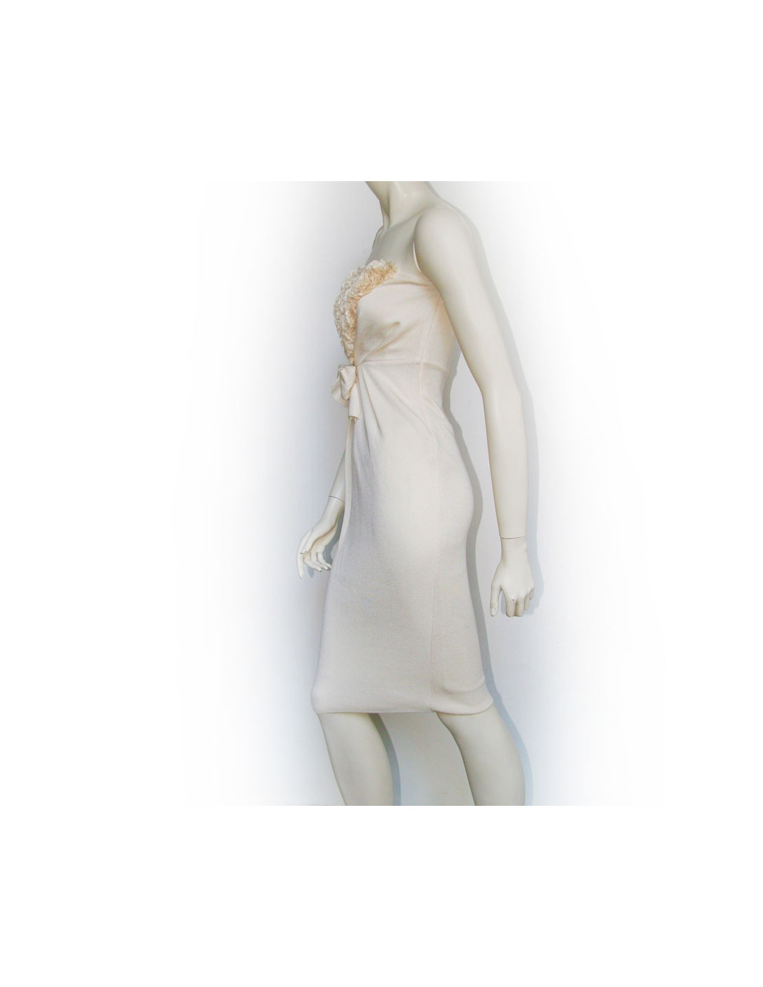 Strapless GIAMBATTISTA VALLI body in broken white tones 100% silk. At the level of the chest, a piece of tissue that form as a tapestry of flowers below a pretty silk bow. T 40 Italian is 36Fr In good condition. No traces of wear special just a few stuffed animals due to the fact that it was brought several times. Height: 87cm, Width at the level of the chest: 35 cm At the level of the waist width: 33 cm, Hip width: 41 cm, Width at the bottom of the dress: 36 cm