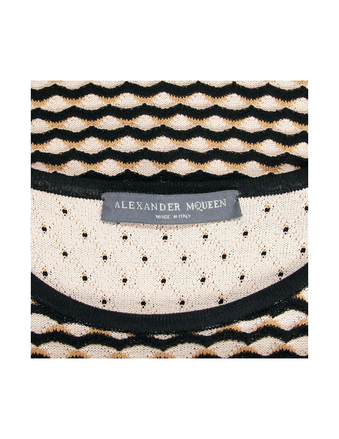 Dress mid long sleeveless beige Alexander McQueen with black and Brown waves. Worthy of the finest fabrics of Alaïa stretch material, marrying perfectly the body lines.