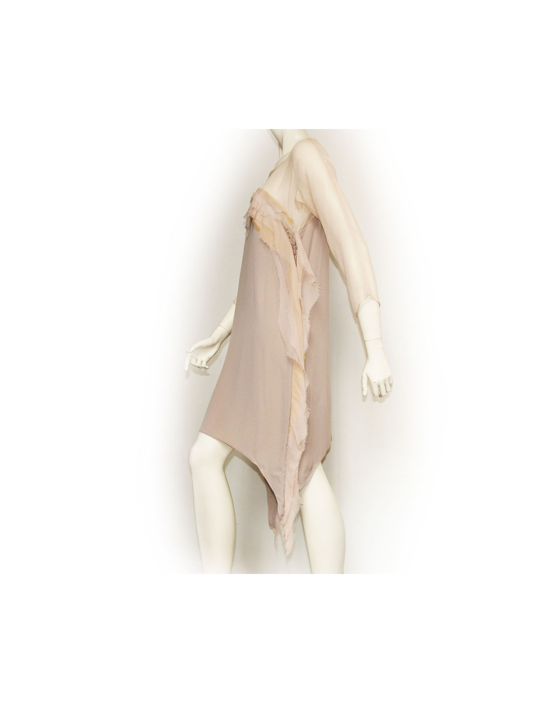 Dress 100% silk grey Anne Valérie Hash size M. Very fluid and easy to carry. It will be very pleasant to wear this summer. The top of the dress is transparent.