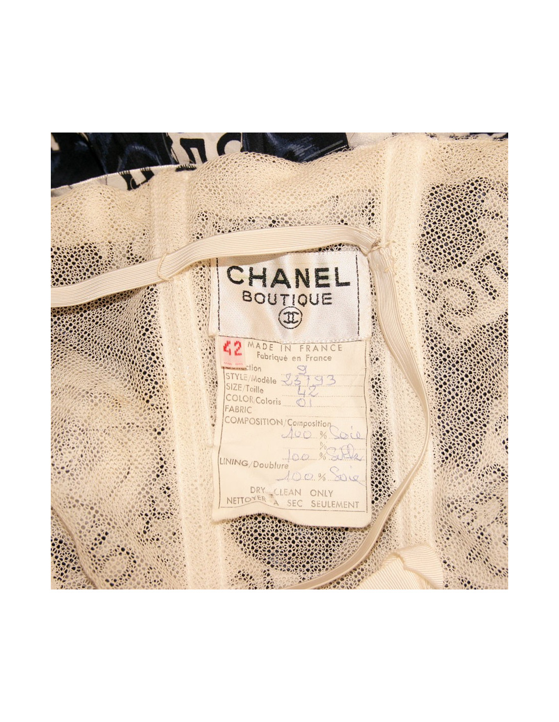 Sublime dress of T42, casual Chanel silk with camellias and the number 5, colours blue and white print
