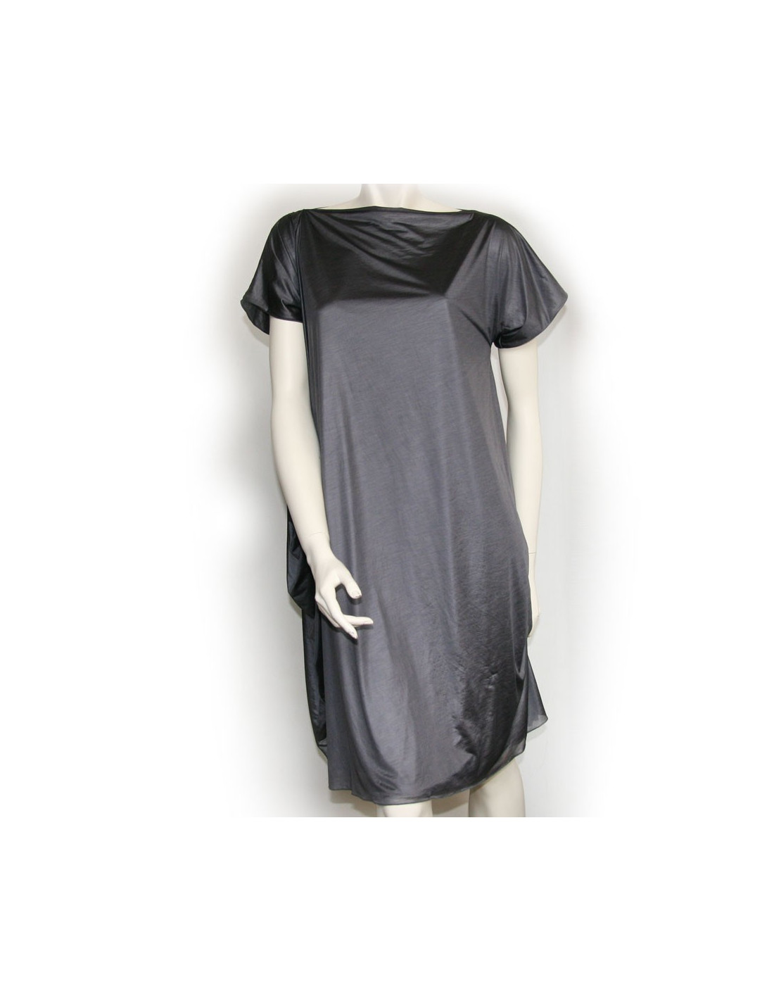 Beautiful dress with short sleeves, fluid and extremely light, 100% polyester fiber (makes think to silk), grey, Bottega Veneta. Size 40. Triple-layer first 2 dresses are straight and the third dress is like a drape expands on one side. It has never been worn.