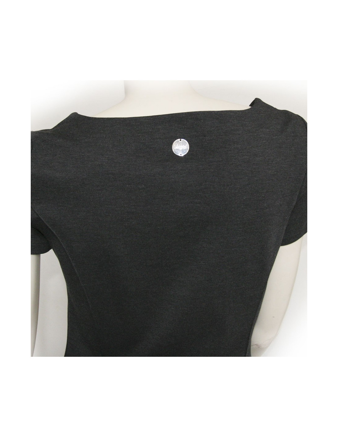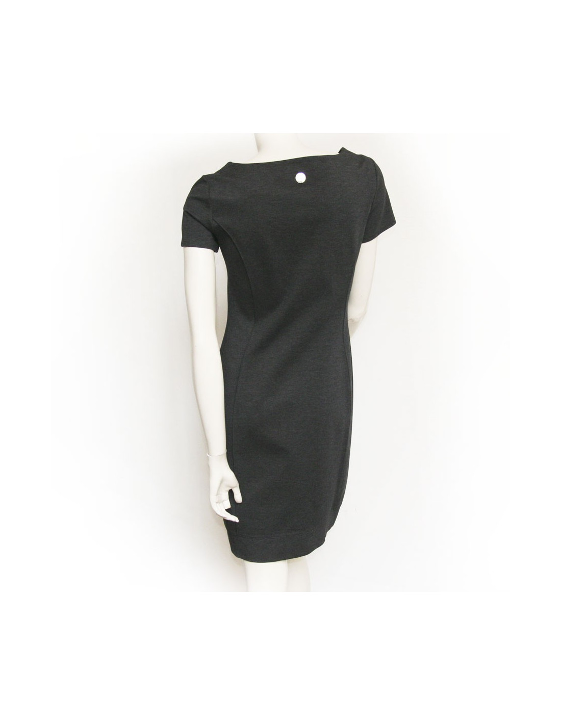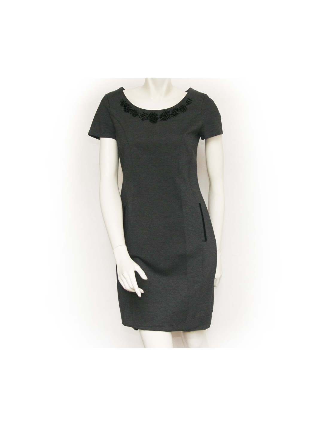 Dress grey stretch Blugirl of Bluemarine T38. It is worn close to the body. Round neck. Effect collar at the level of the collar with embroidered black pearls. Two pockets with a liseret in black velvet. In very good condition.