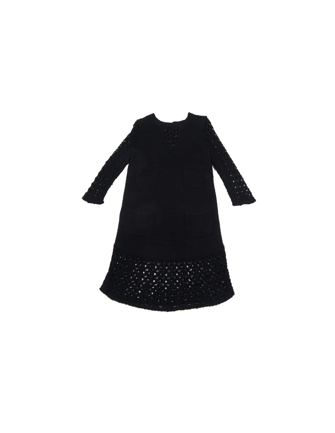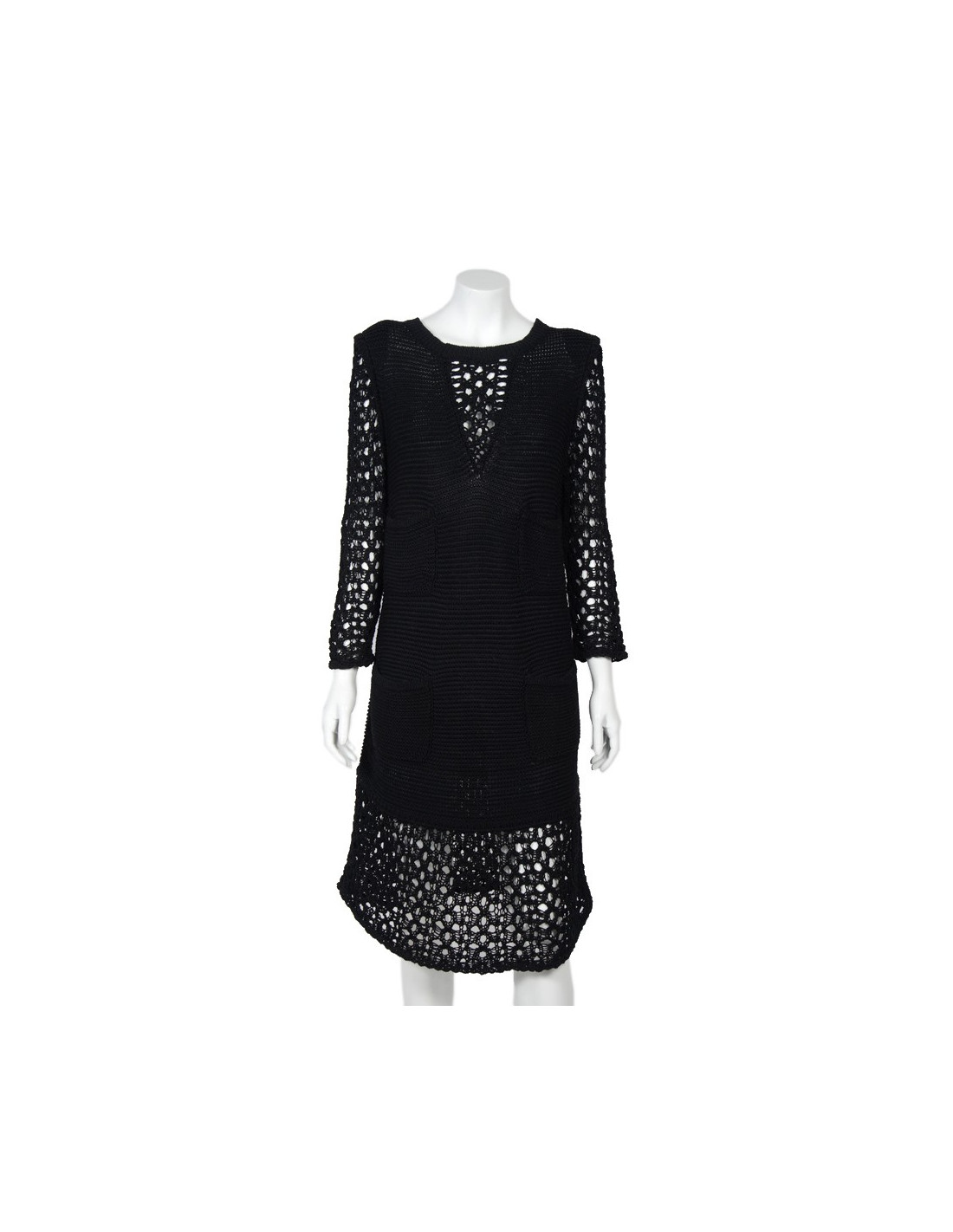 Chanel long dress in black mesh crochet. Size 40.