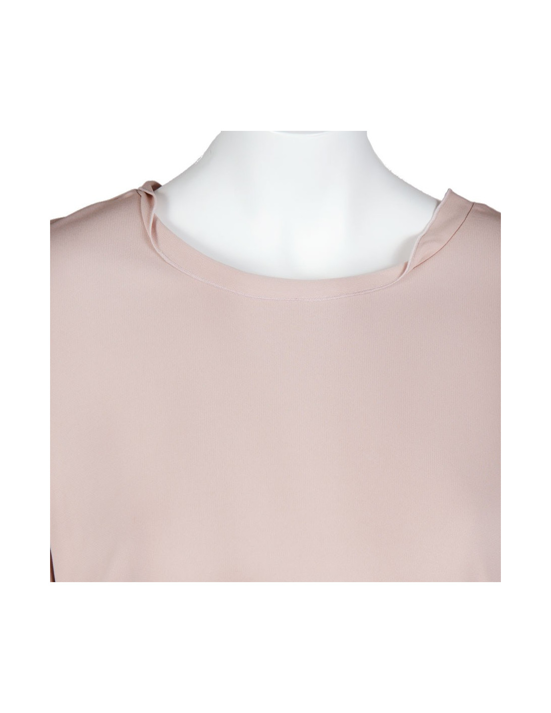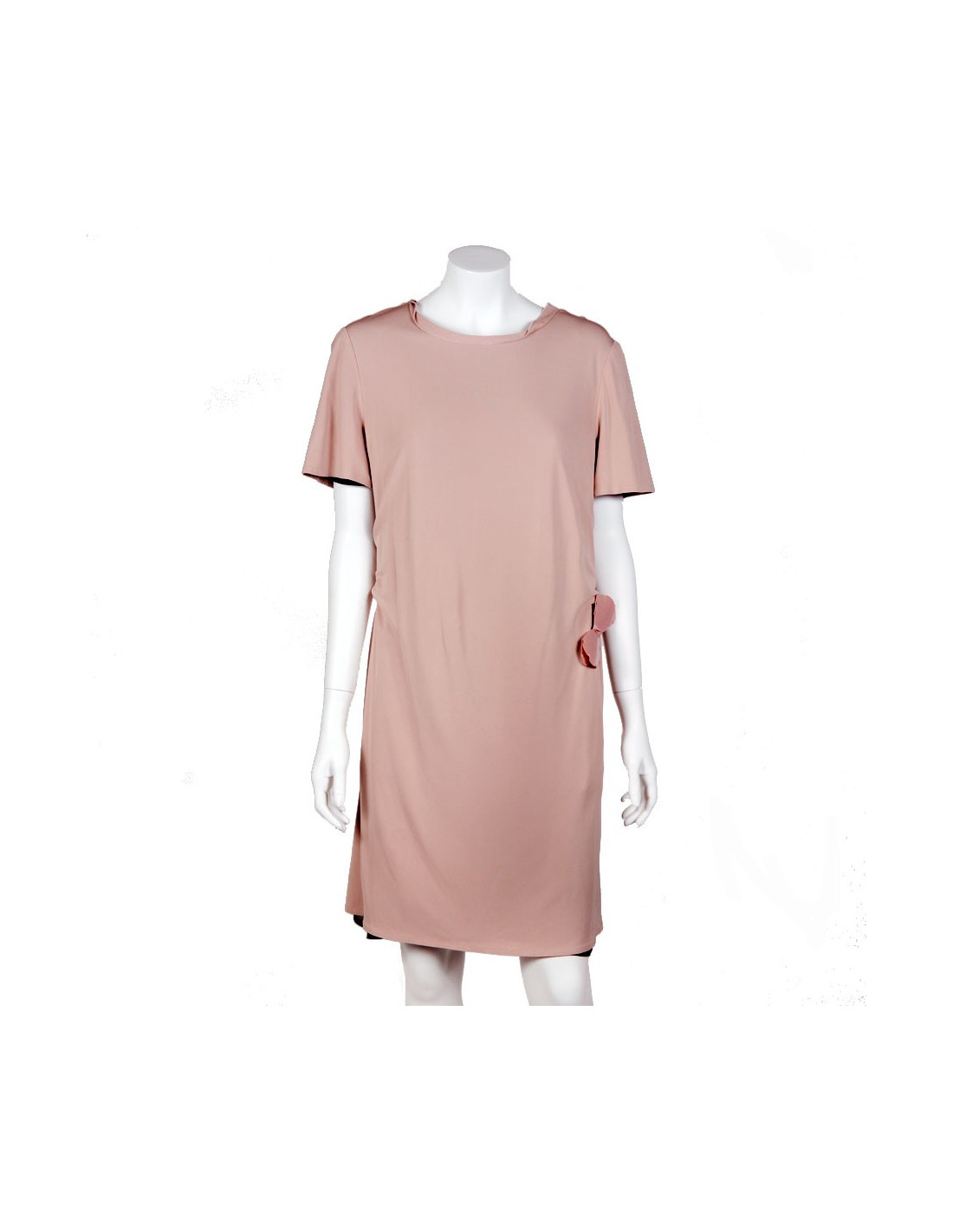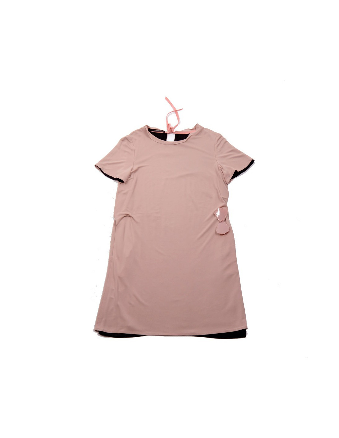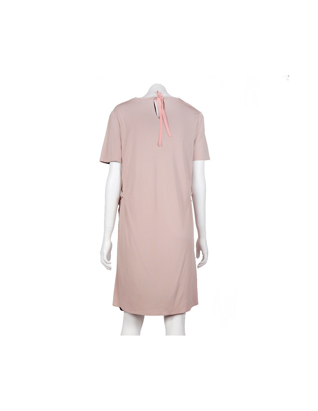Maurizio Pecoraro, T44 IT dress (equivalent has a 40 french). Color 'old rose'. Short sleeves. Little knot plastic pinned to the front of the dress + Ribbon to tie on the back of the dress. Composition, 100% viscose, lining: 100% polyester. In very good condition.
