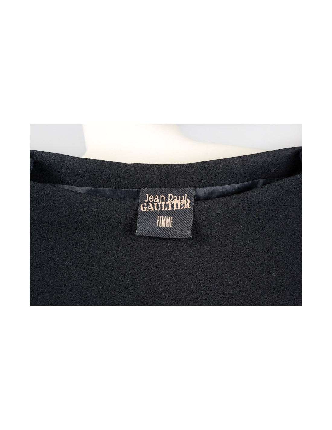 Black wool dress Jean Paul Gaultier. Size 40. Straight cut. At the rear, at the level of the lower back, the dress is pleated. Zipper under the left arm. In very good condition.