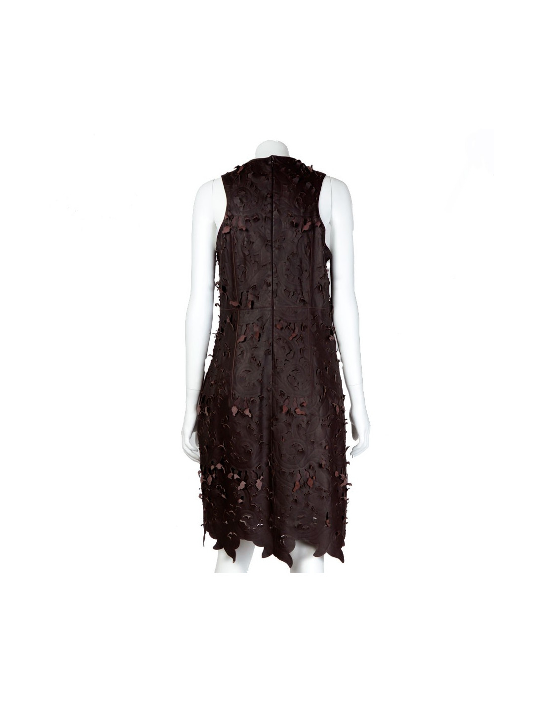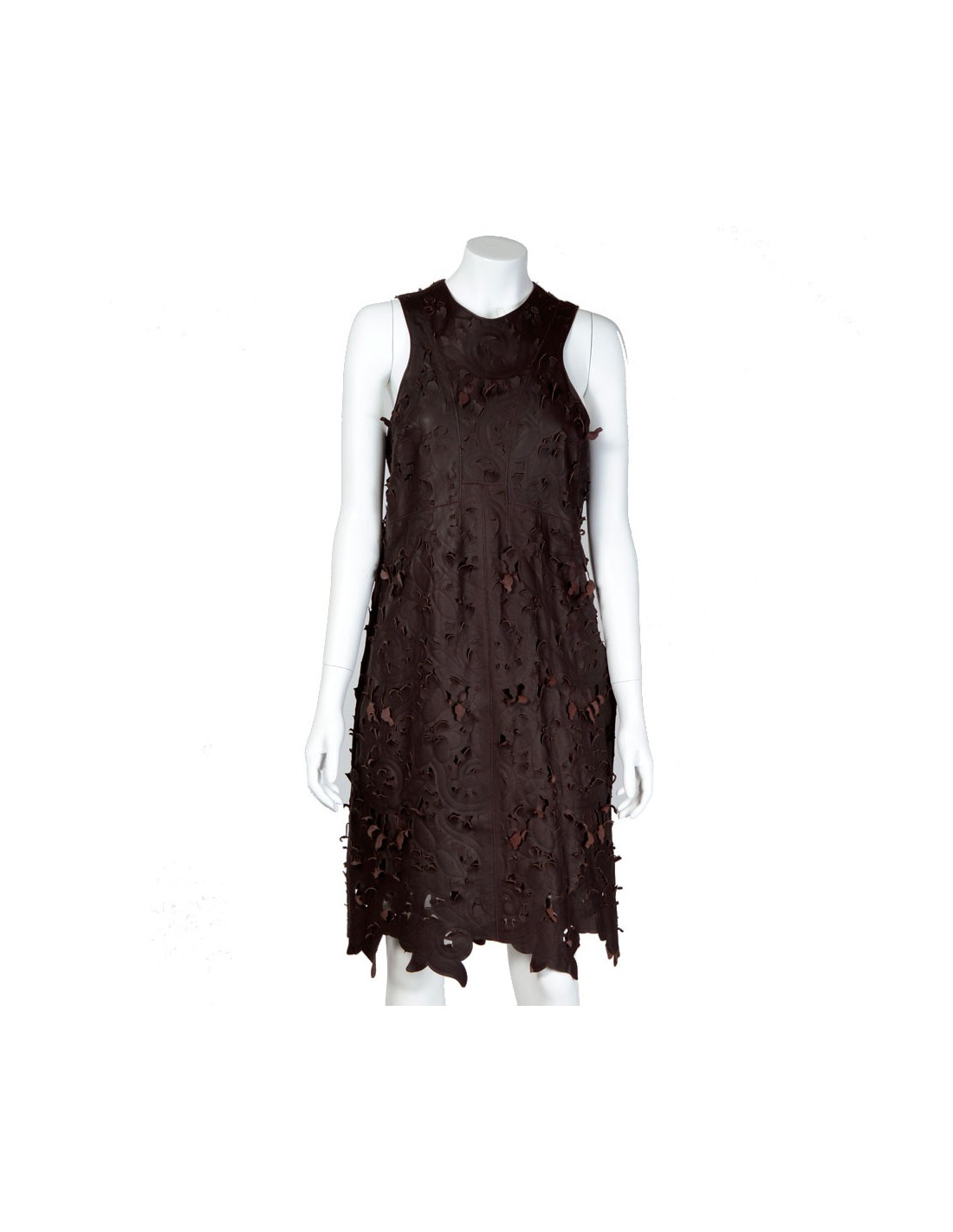 Pretty dress Carven sleeveless, dark plum color. 100% lamb leather, antique effect.