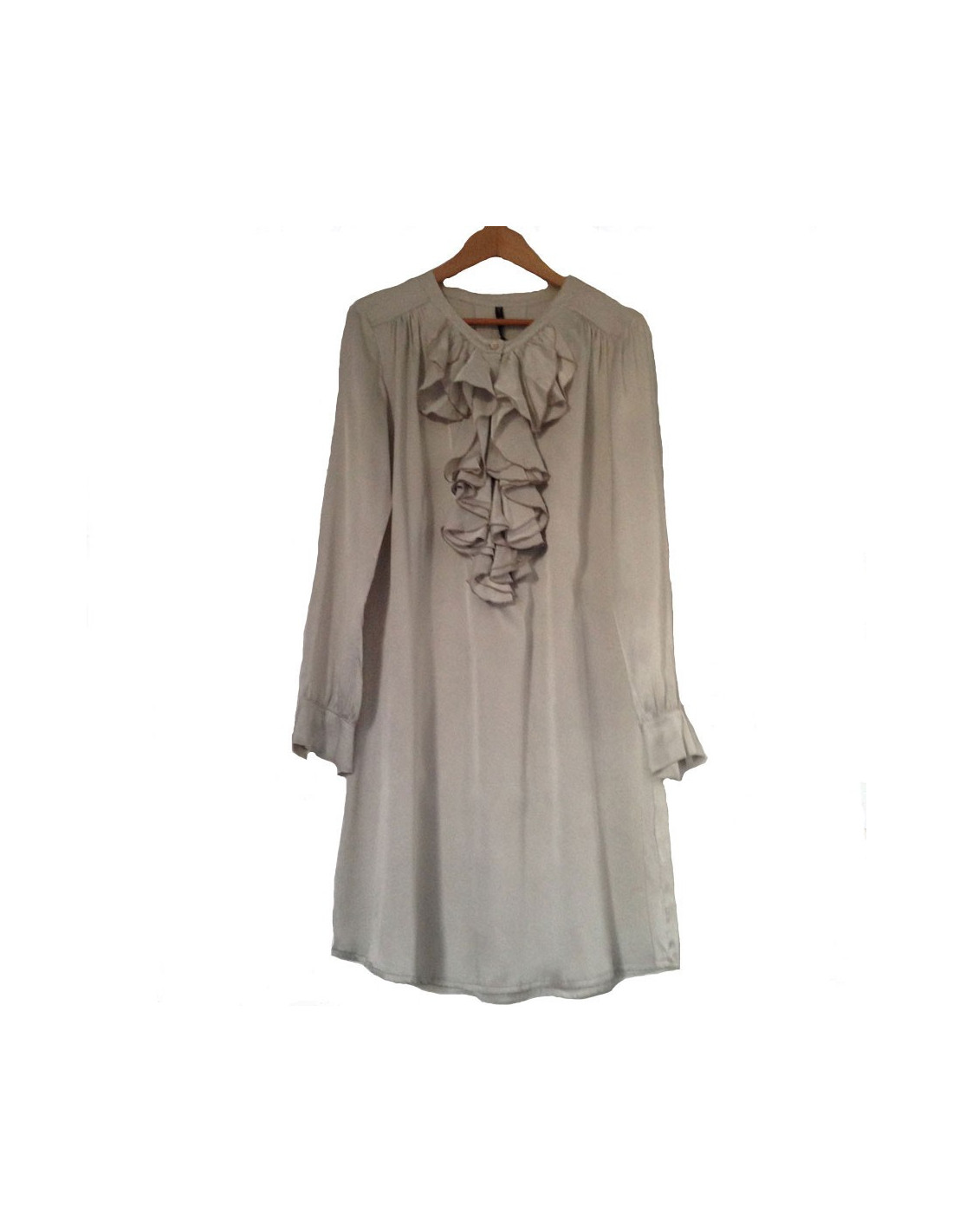 Silk dress grey Pearl Manila Grace, long sleeves, buttons on the cuffs, collar frilled 5 buttons. Size 46it. very good condition.