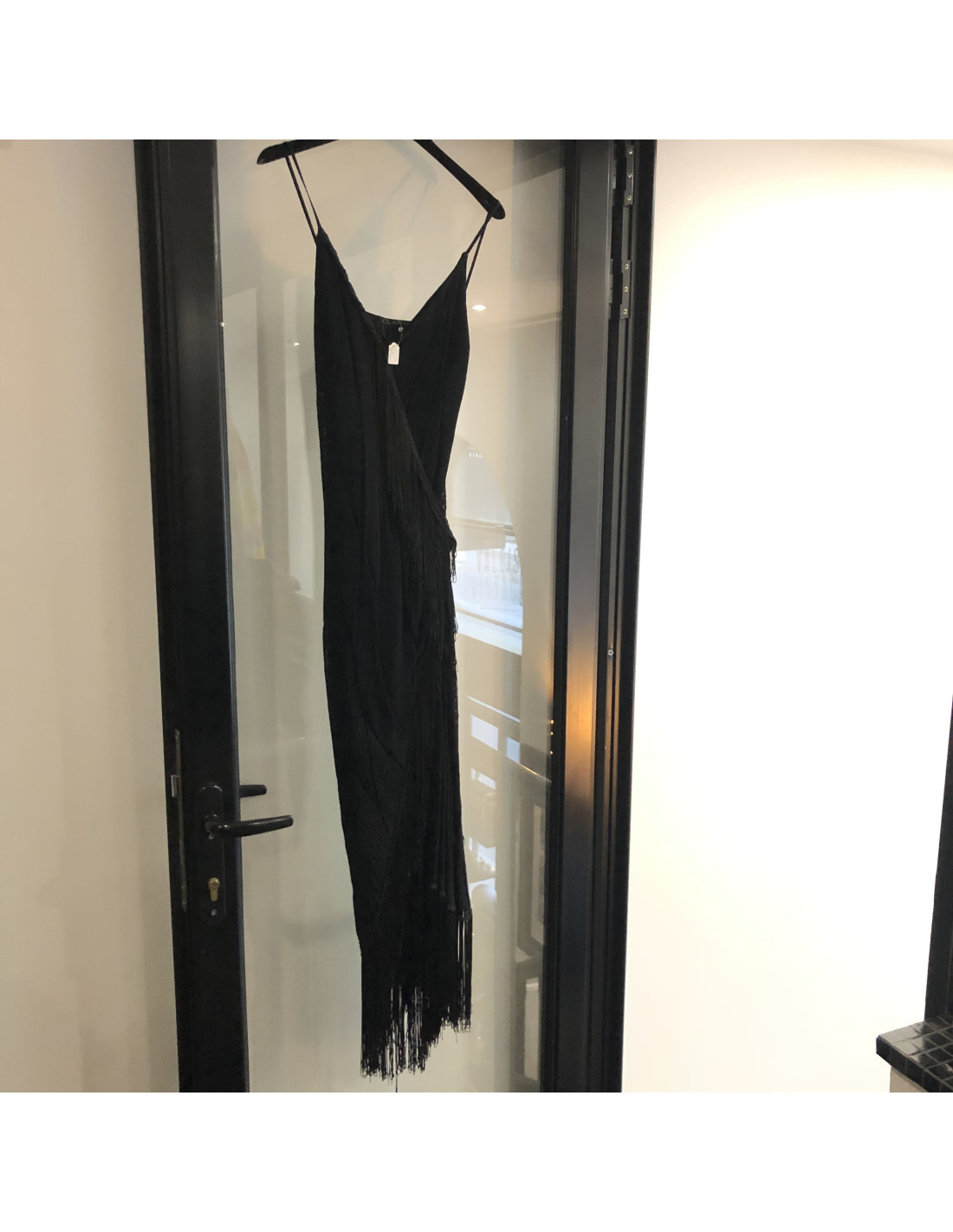 Robe noire du soir Cavalli, à longues franges noire T44Fr (matière extensible). Doublure synthétique noire. En état parfait.