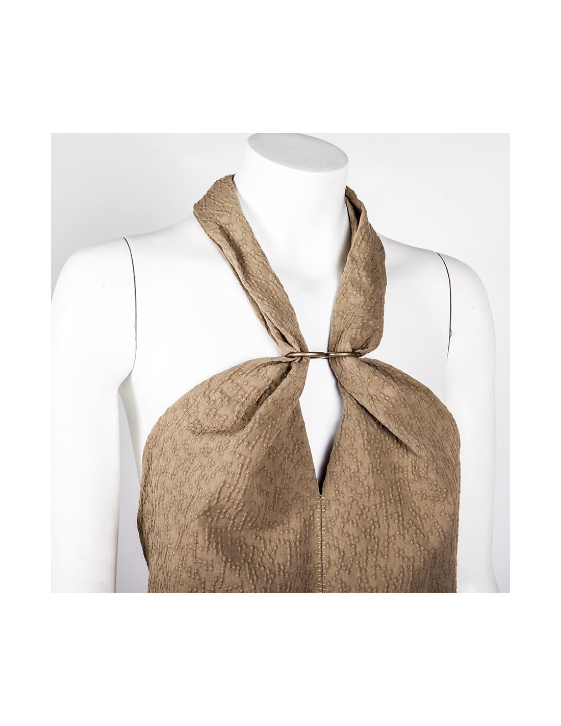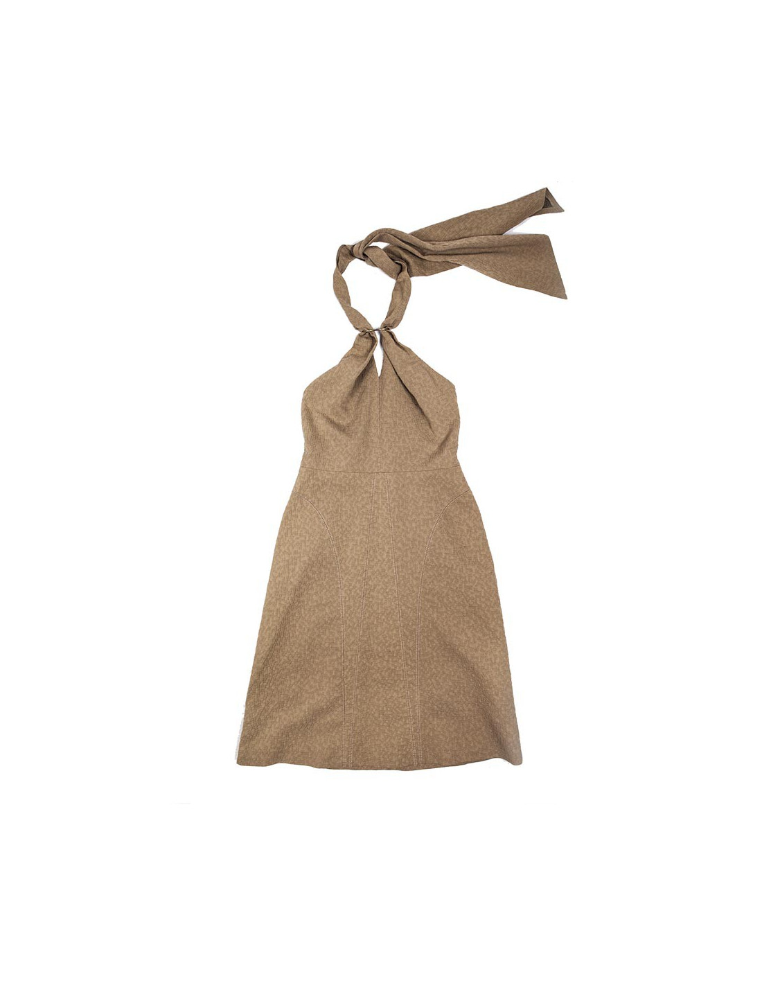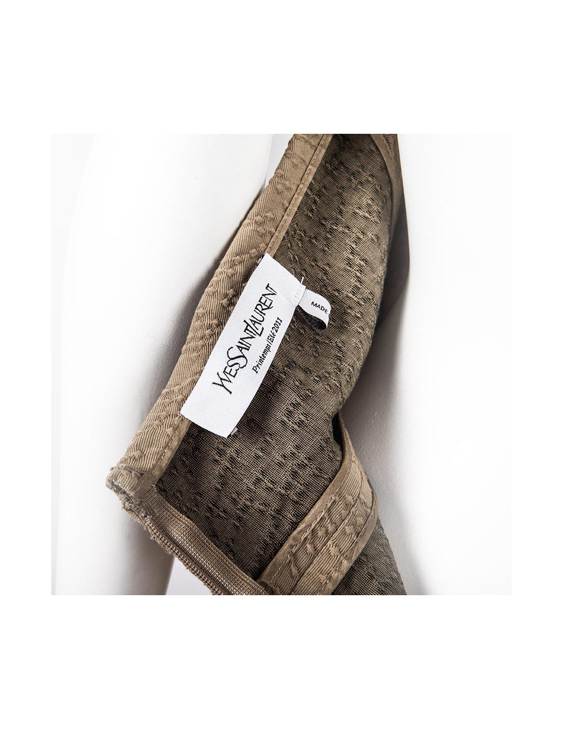 Beige size backless dress size 40 en Yves Saint Laurent, bare back in cotton, wool and silk in relief and bites on the seams (label size and material).