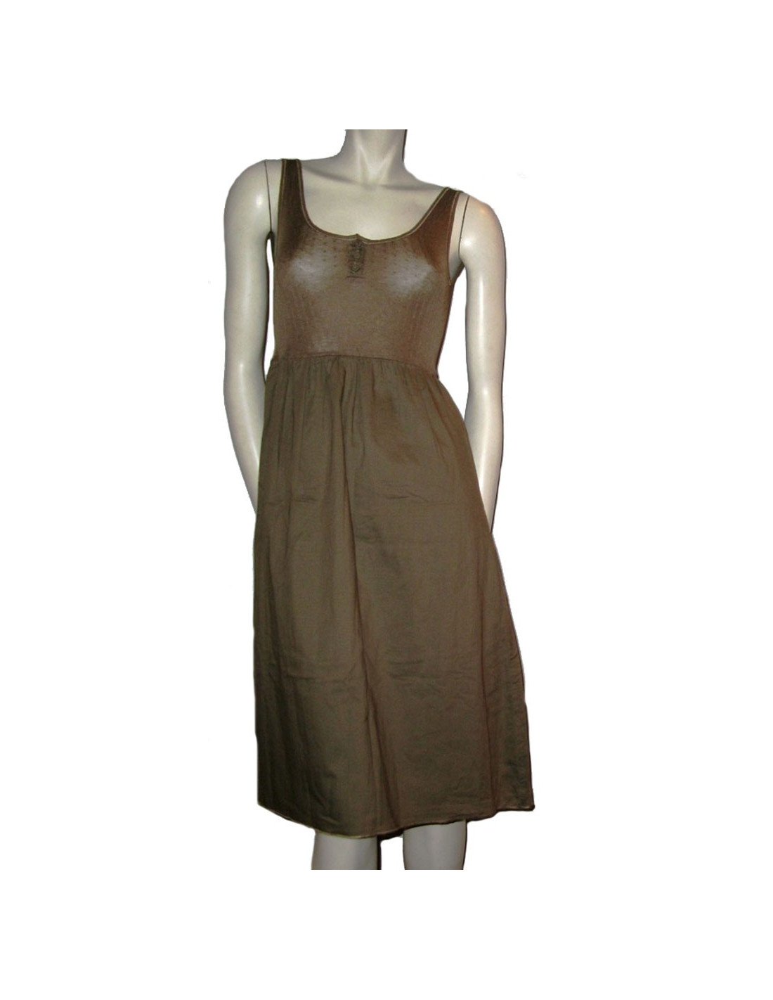 Pretty summer dress SONIA RYKIEL in khaki cotton size S (fits a 36 t). "Rykiel" in rhinestones on the back. Composition: 91% cotton, 9% silk. S of balances. In very good condition.