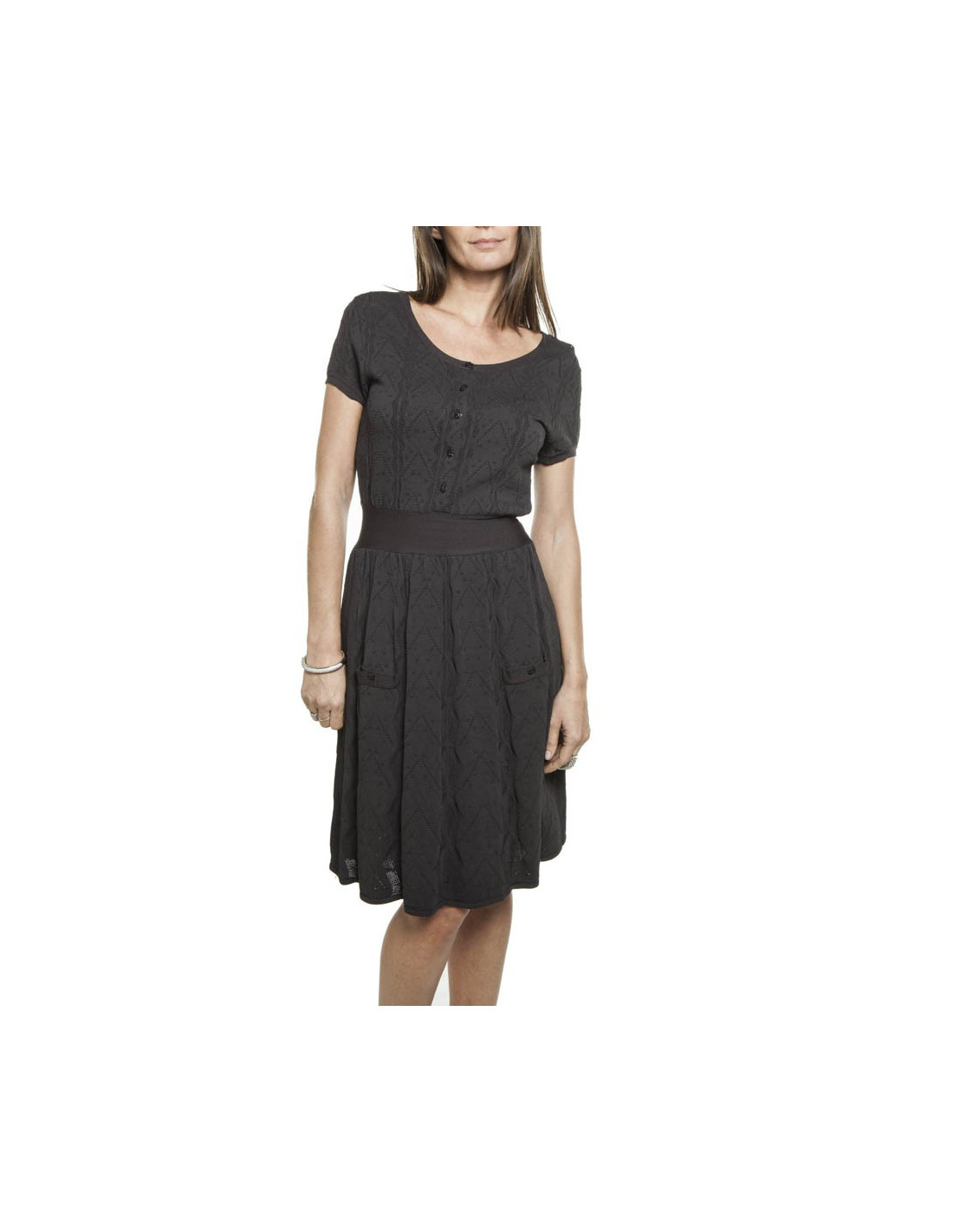 -250.00 € Sold DRESSES CHANEL T 38 tweed dress black and white CHANEL 16659 685.00 € 935.00 € Dress black and white Chanel T 38, with neck and edges of the black sleeves. Tweed wire and perforated cotton fabric. Round neck. Two front pockets. The dress fitted with zipper on the back. ' balances s. Very good condition. Shoulder width: 38 cm, chest: 42 cm, size large hips: 47 cm, height: 95 cm, sleeve length: 12 cm. View