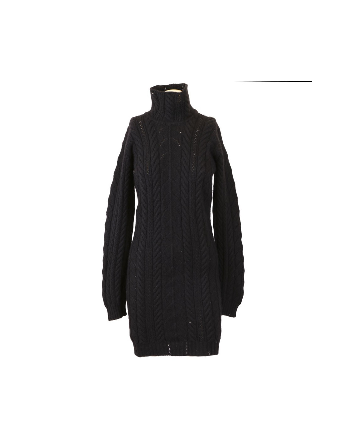 Dress in black cashmere knitted with cables, Christian Dior. Fireplace neck (12 cm). right dress as a long sweater and narrows down.