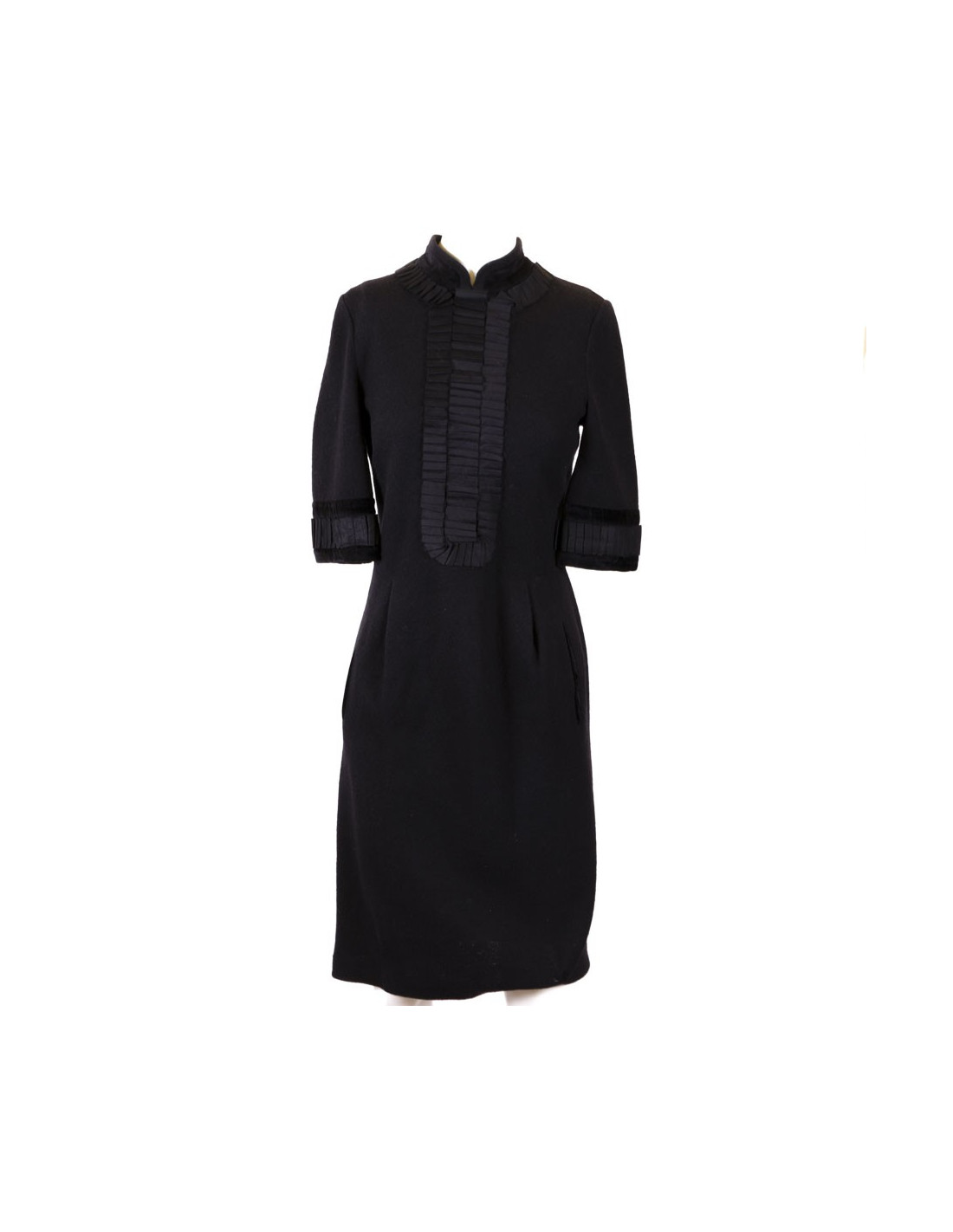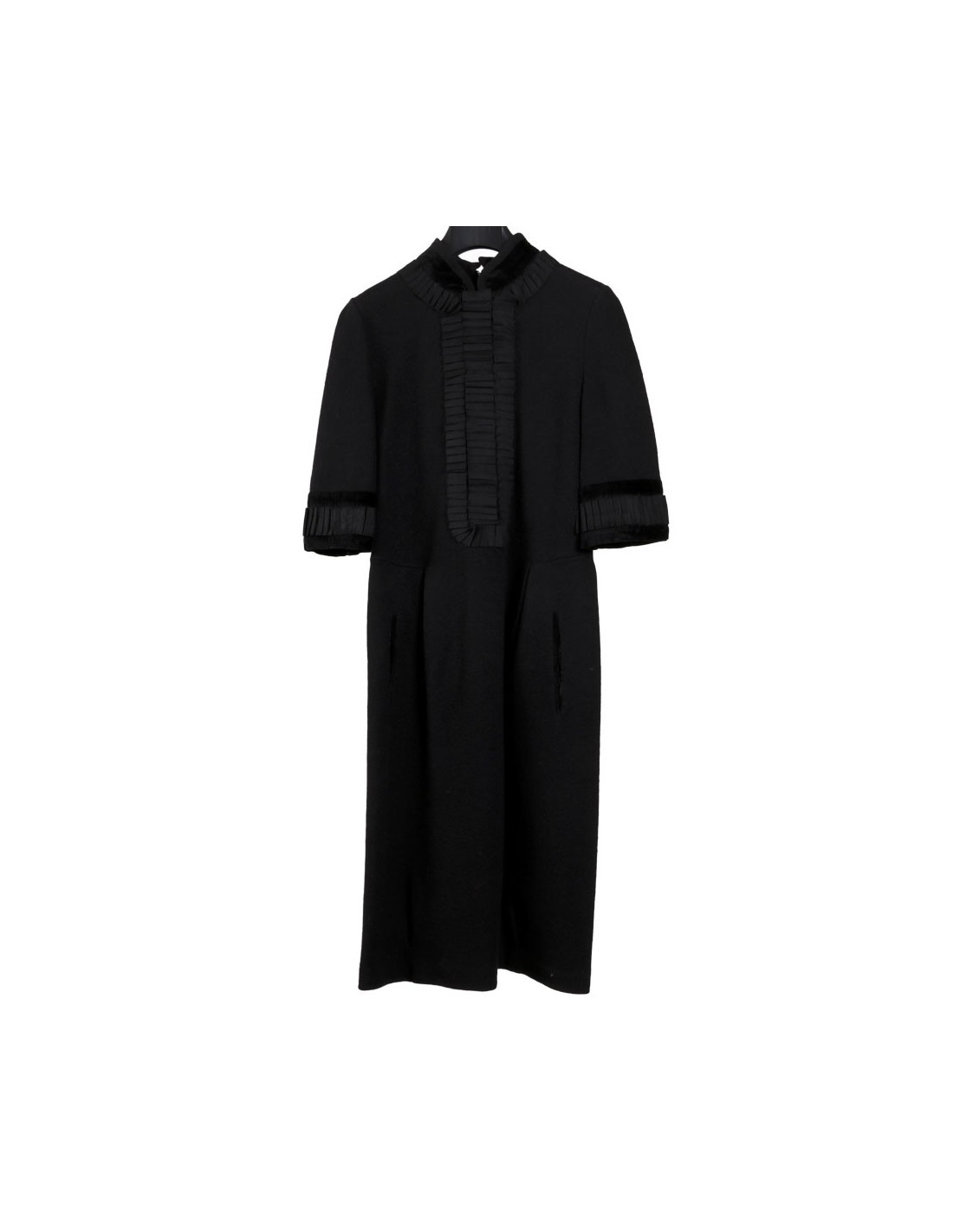 Black loop, velvet and silk frill dress left bank Yves Saint Laurent by Stefano Pilati