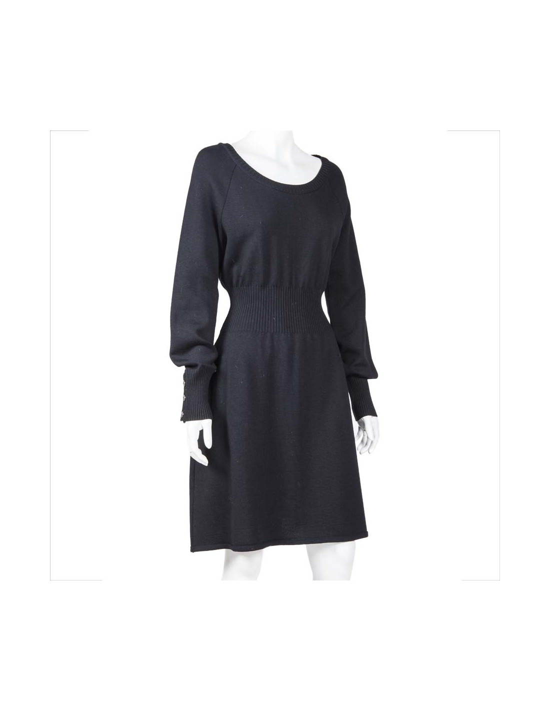 Last items in stock DRESSES CHANEL dress in black tweed and leather size 38FR CHANEL 20769 2,520.00 € Chanel dress in black tweed and leather. Size 38FR. The neck is notched and the front of the dress is adorned with two patch pockets with a button on each pocket representing the world. A wide leather band of 10 cm is on the chest as well as in the back. We find this same leather band on both sleeves with a width of 28 cm and at the bottom of the dress of... Add to cart