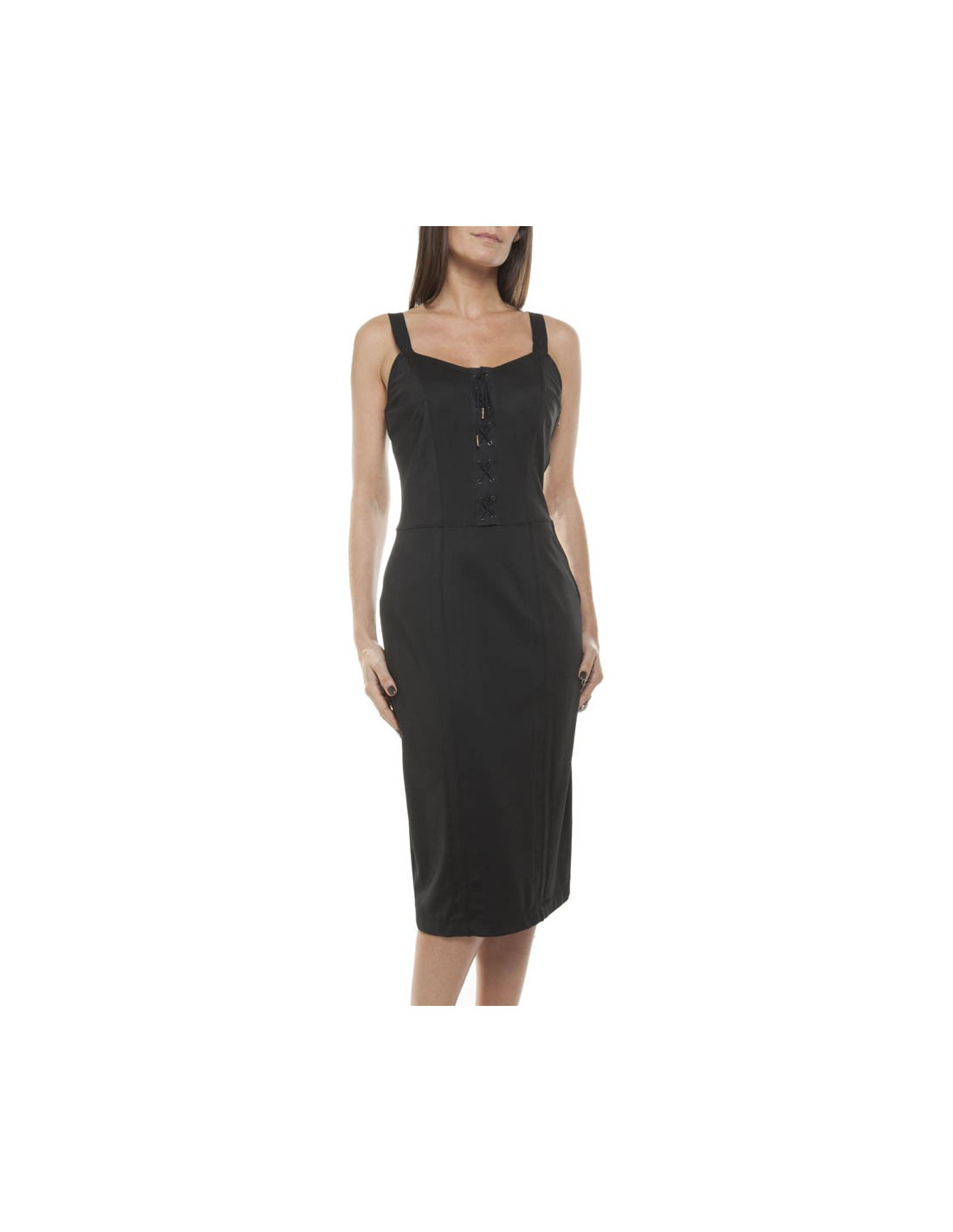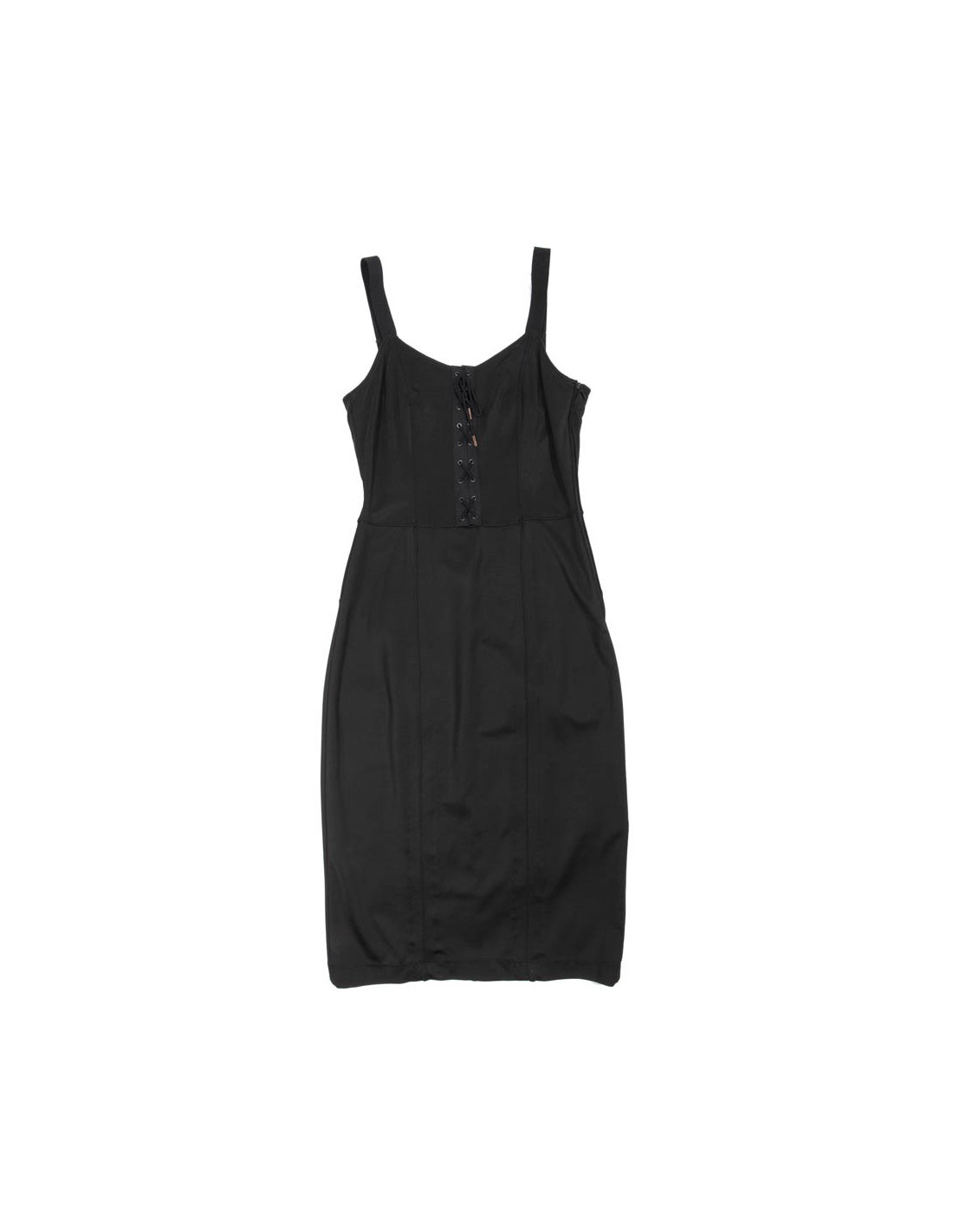 Dress with straps black viscose Alexander Mc Queen size L fits a size 38/40 fr. laced neckline, exposed stitching, tube dress, fitted at the waist with zip on the left side.