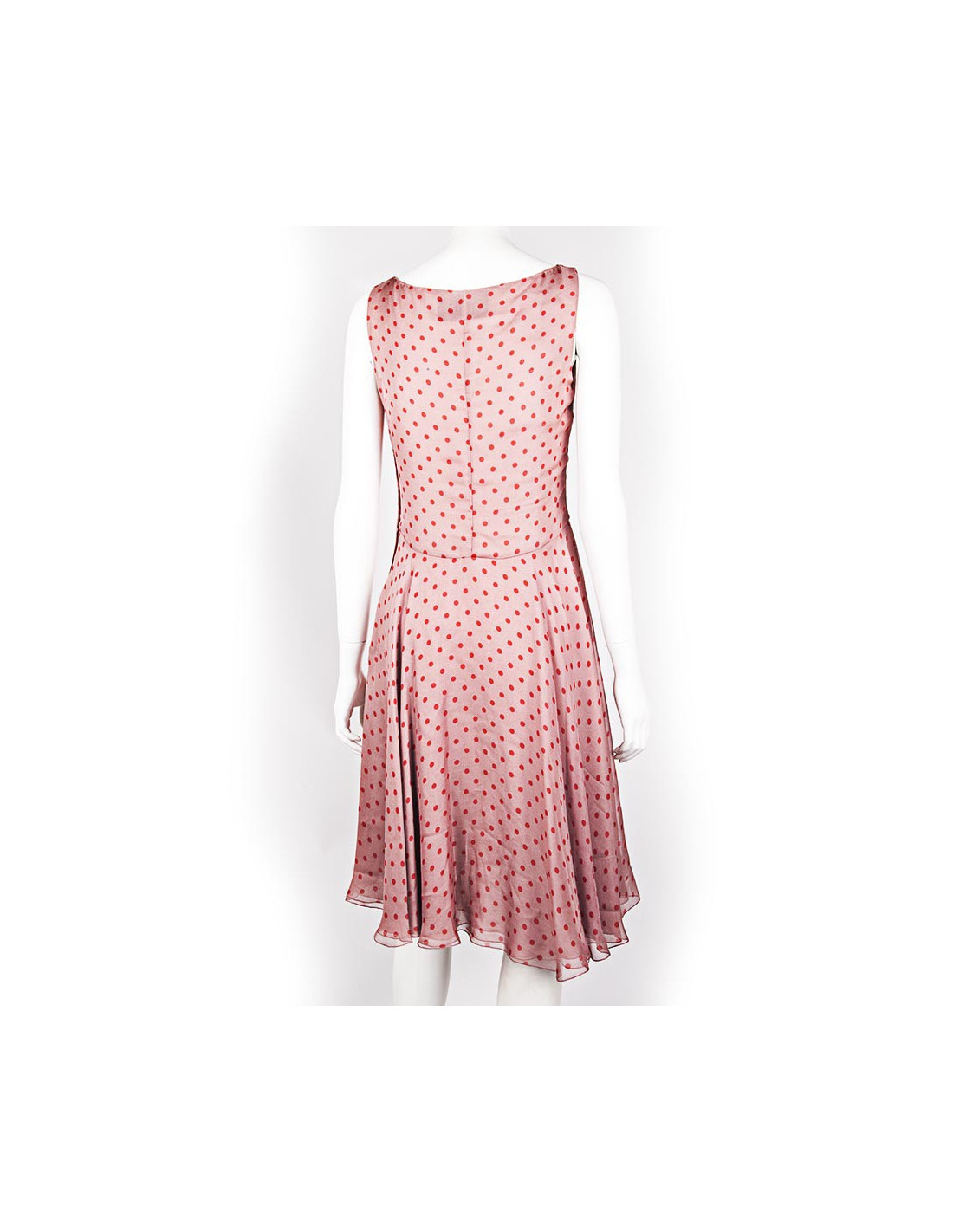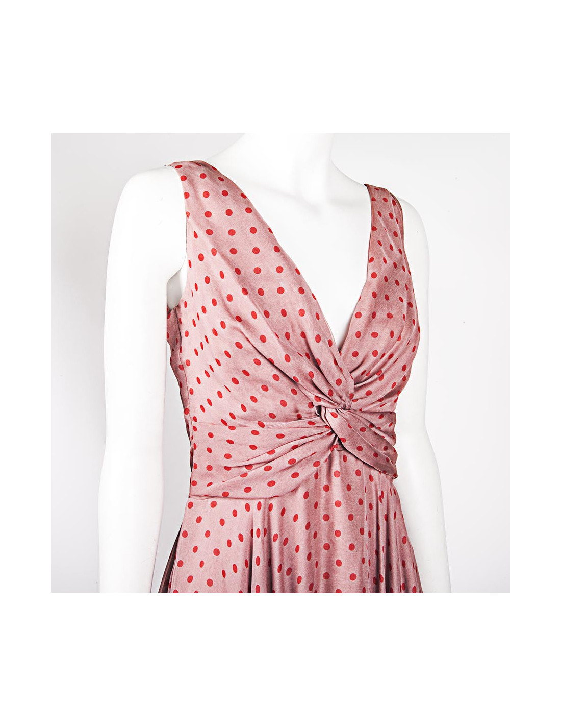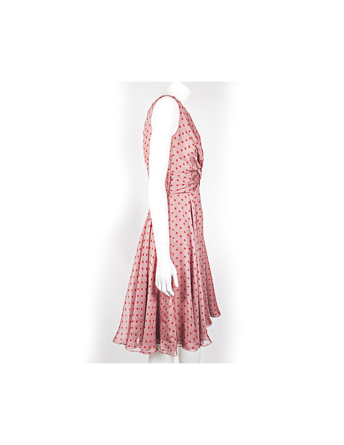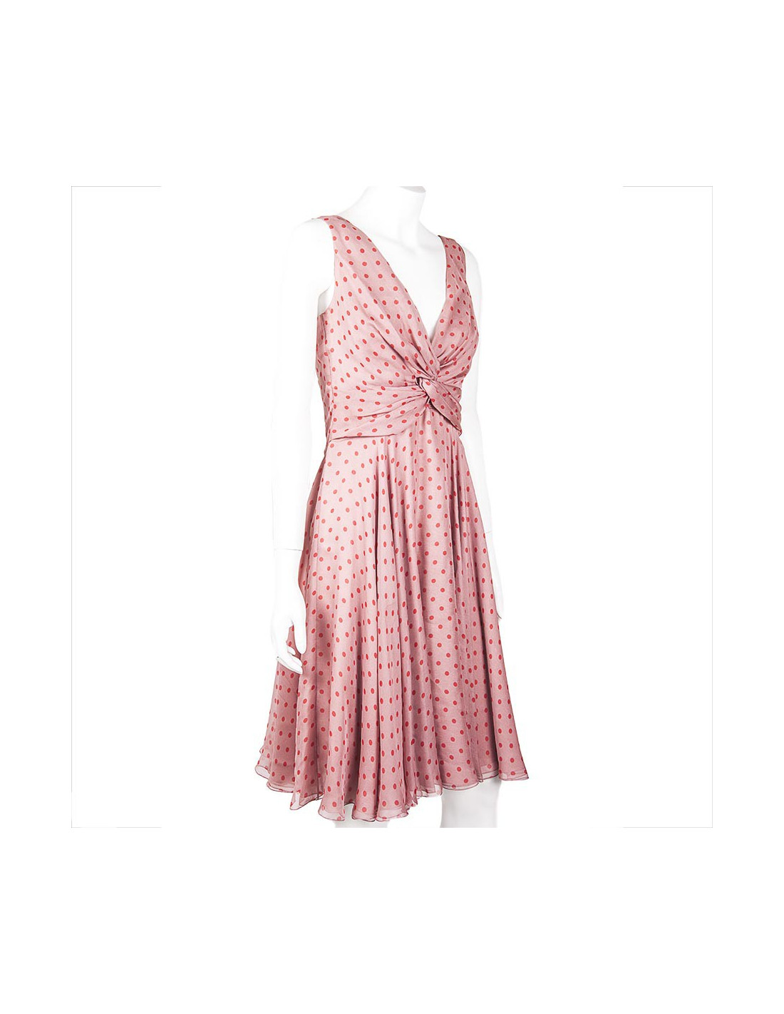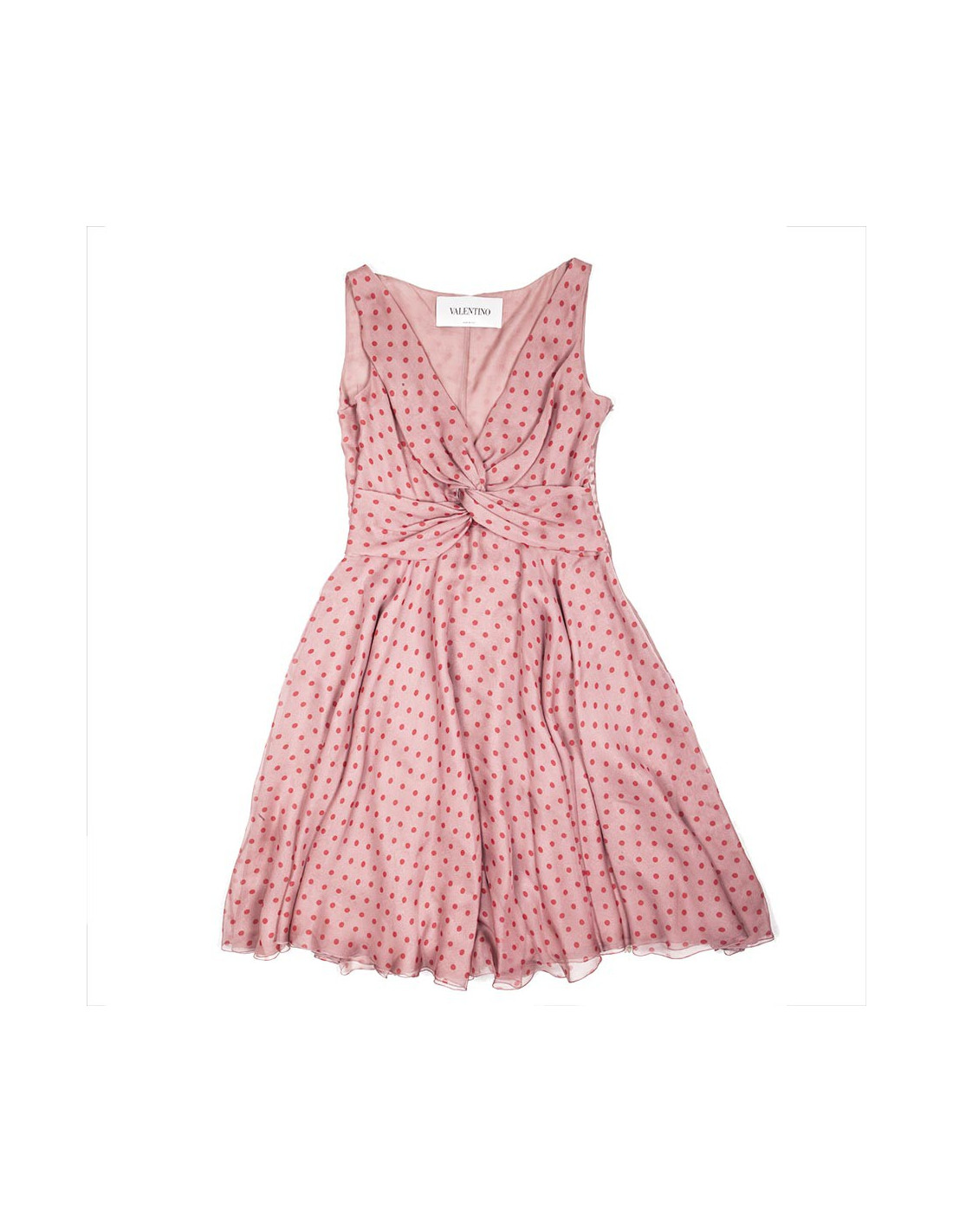Pure silk dress size 6 US (size 38 fr) Valentino pink polka dot red. Node draped in the chest, 2 silk linings, air and fine material. light under the armpits, very little visible.