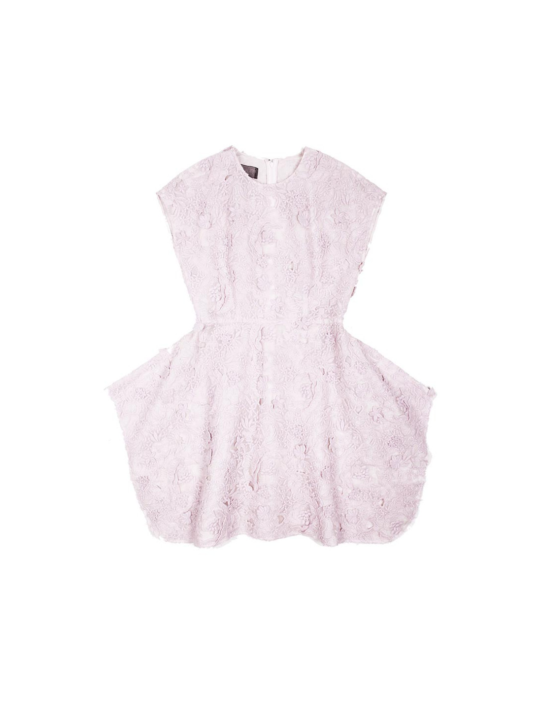 Dress of wool and silk rose Giambattista Valli, size 40 Italian (36 FR). The floral patterns are embroidered wool on a fabric blend of acrylic and silk, the lining is of pure silk. Very good condition.