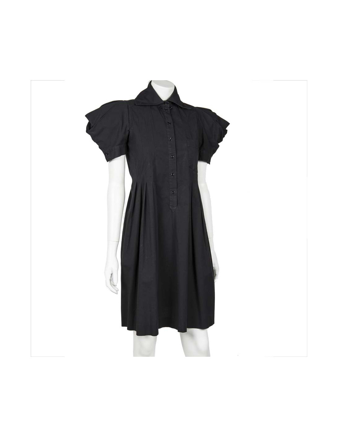 Last items in stock DRESSES PACO RABANNE dress size 36FR PACO RABANNE 19136 690.00 € Paco Rabanne black dress Condition: never worn Size: 36FR Materials: polyester Colors: black Lining: black Measurements: underarm 49cm, waist 49cm, height 80cm Details: Black short sleeve polyester dress. English embroidery with a smooth black lining. Add to cart