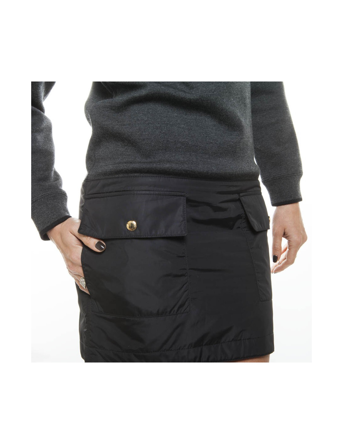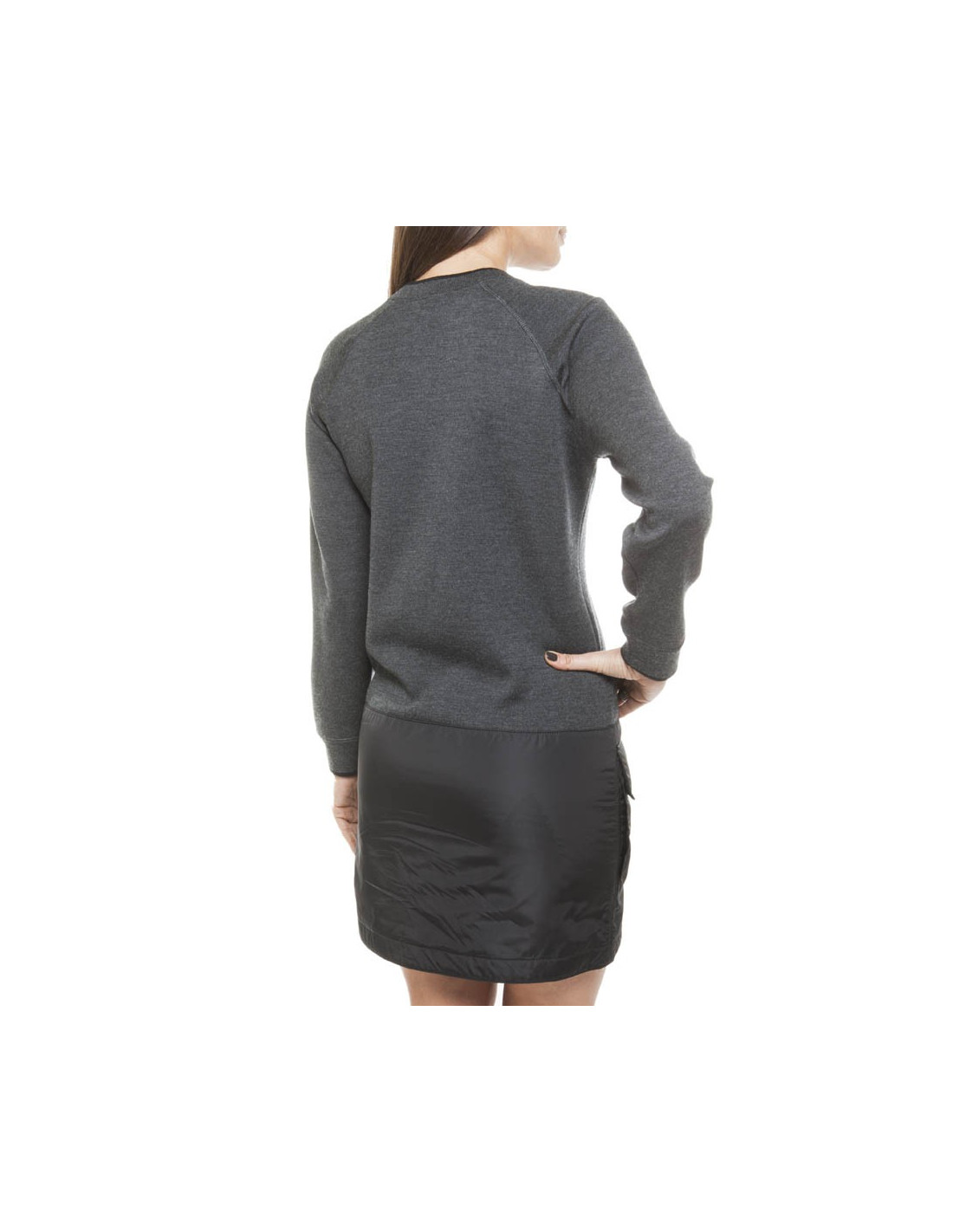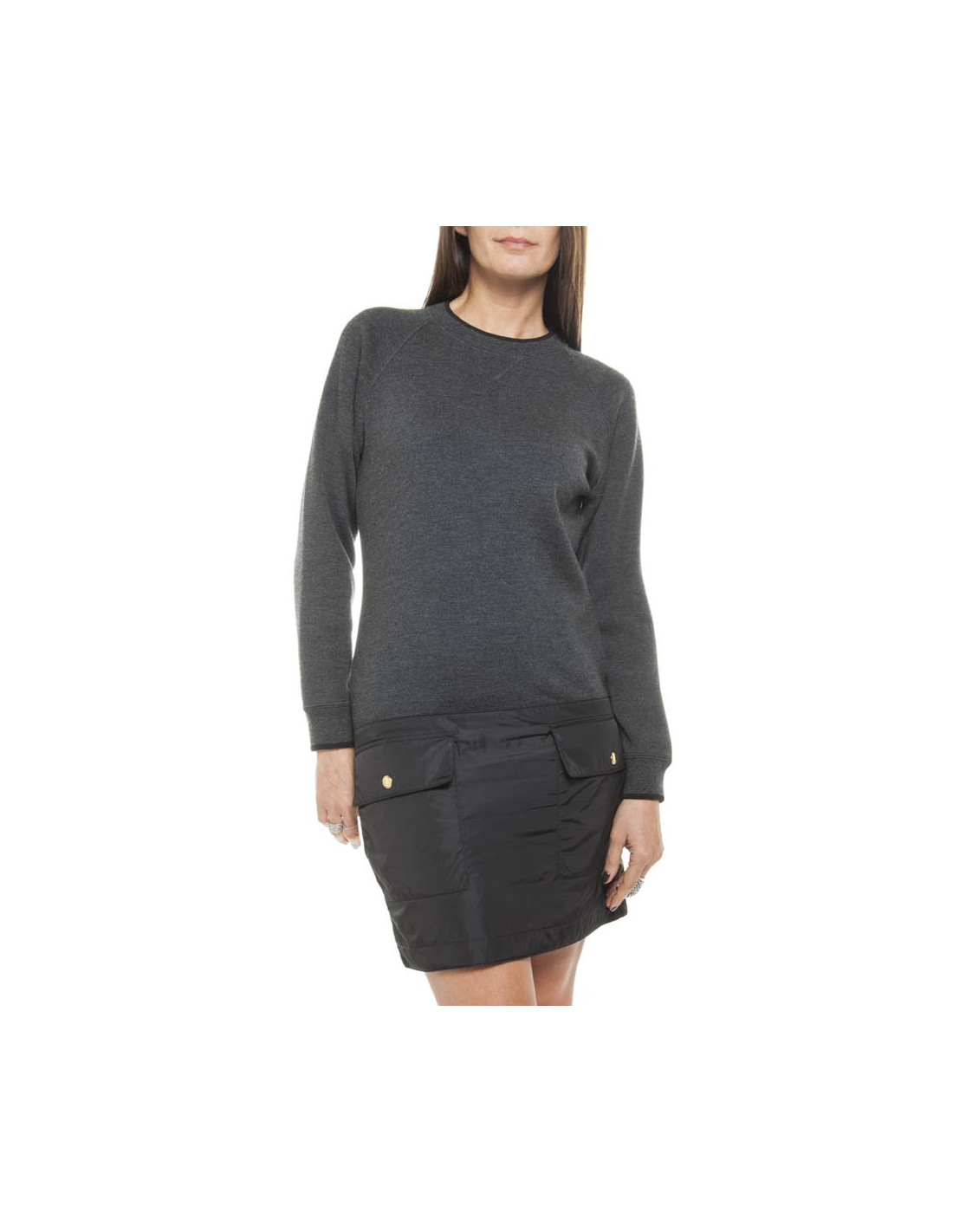 Dress jumper grey mottled wool and silk (see label) Louis Vuitton size 34/36 FR, straight cut, lower part polyamide waterproof, consisting of two pockets gold total pressure "Louis Vuitton".