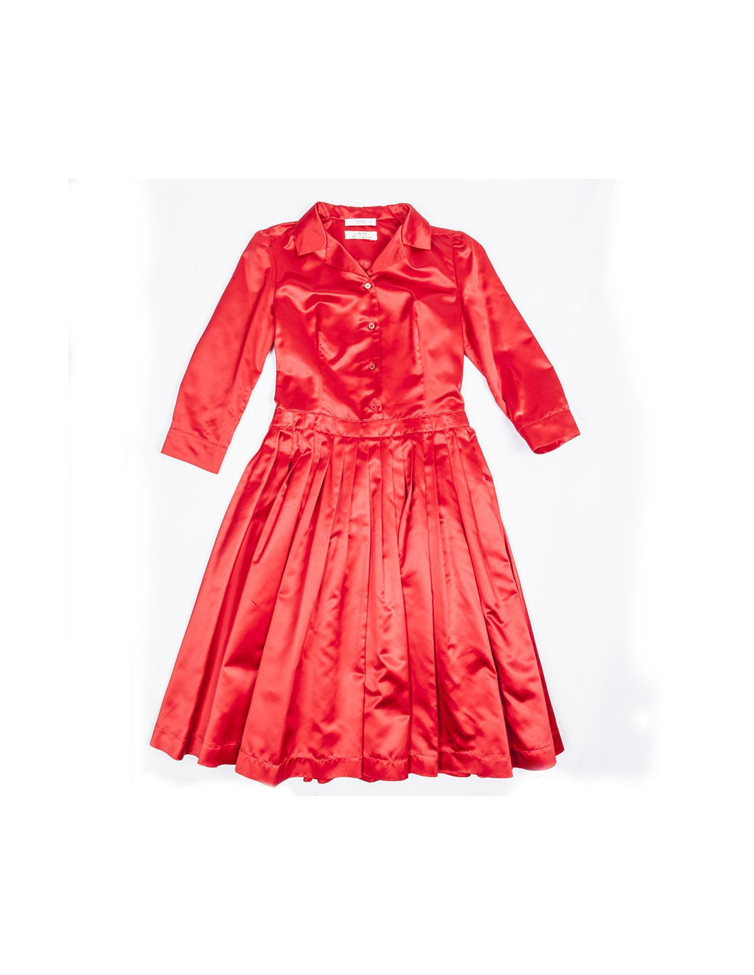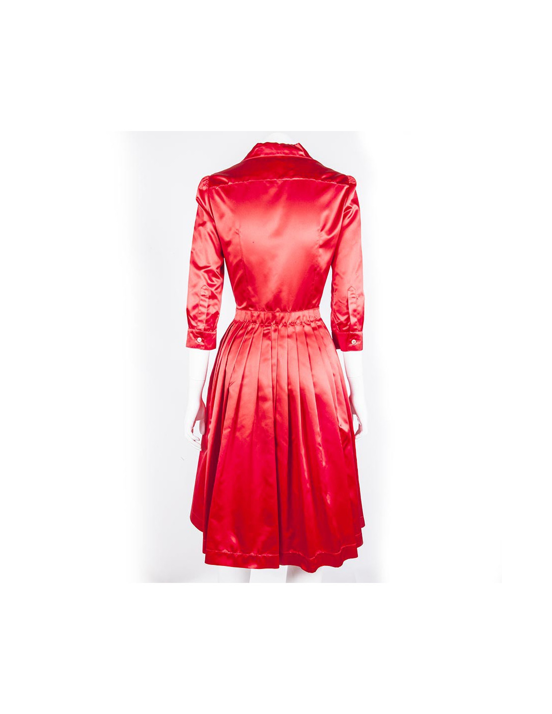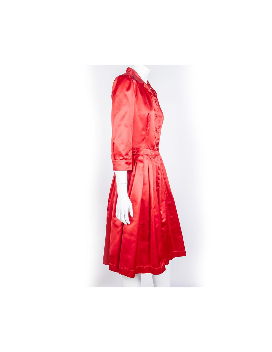 Very chic. Prada red silk dress size 40 Italian (36 FR). Marked size and wide skirt with pleats, three-quarter sleeves.