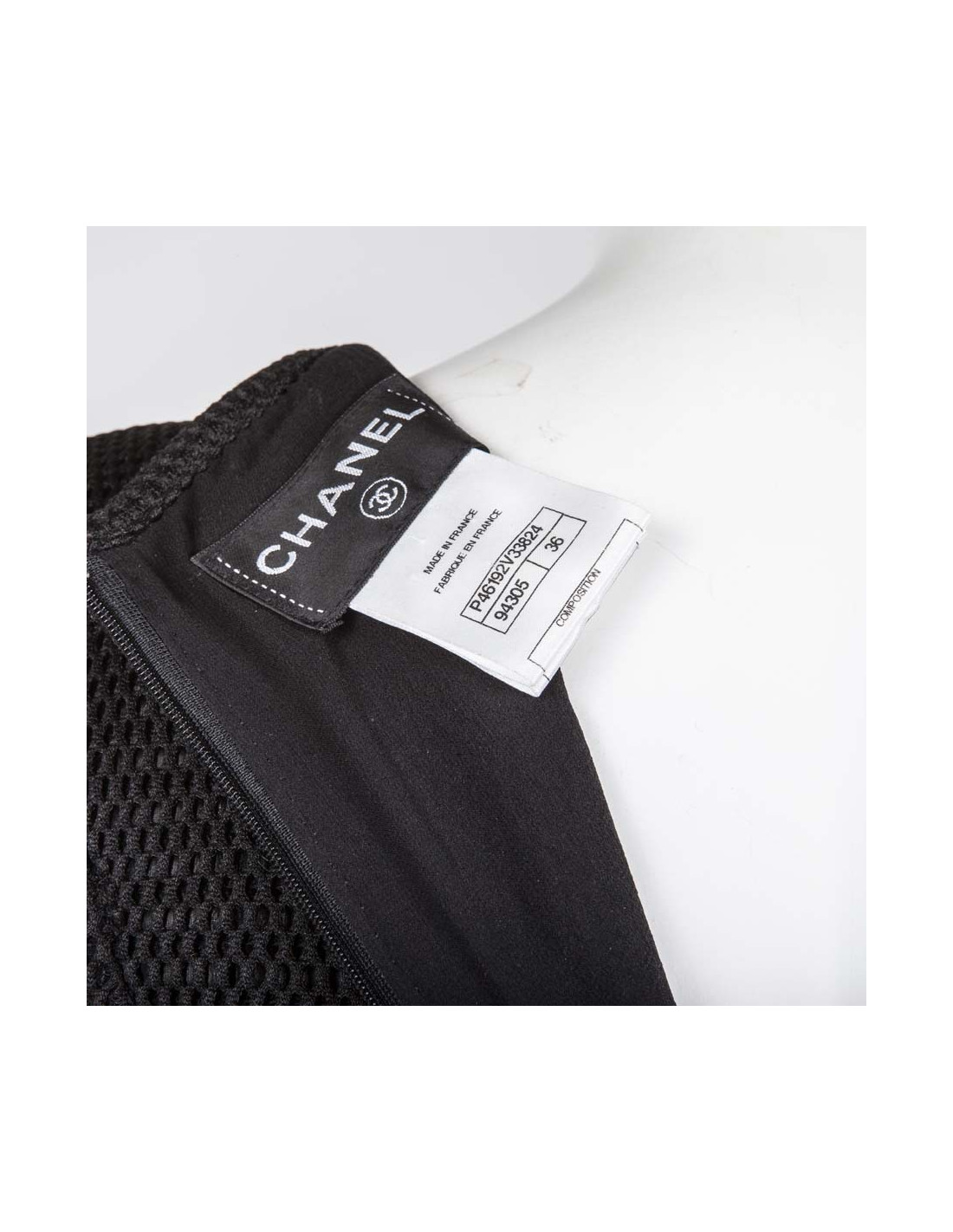CHANEL black dress in polyamide, extensible material. Size 36 FR. Recent collection. 2 pockets at the front.