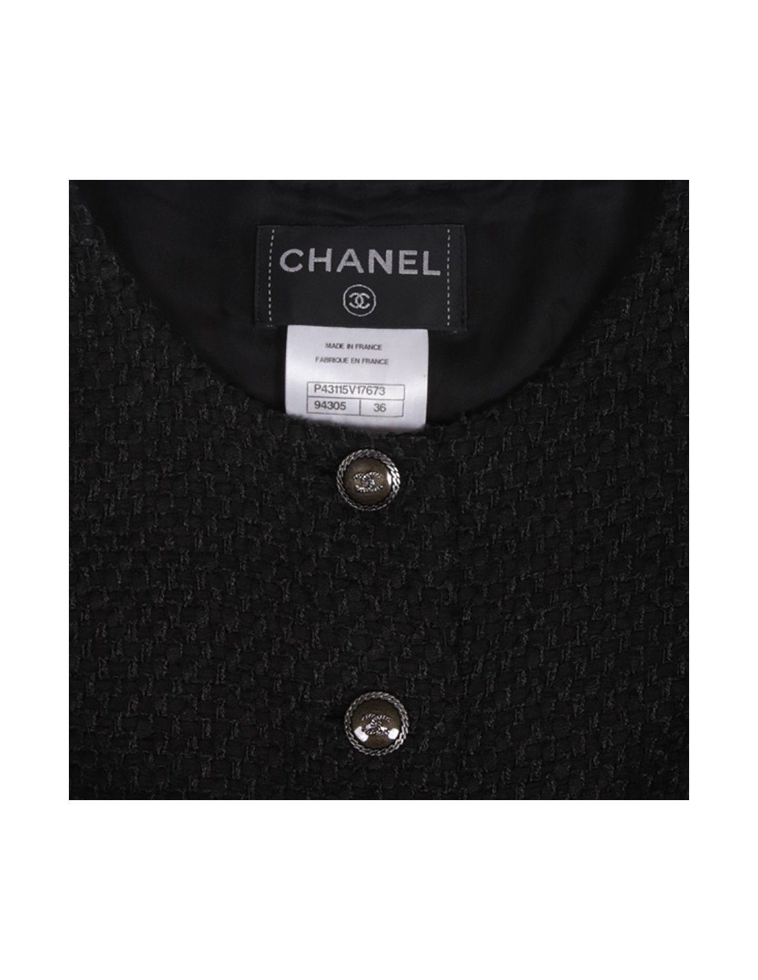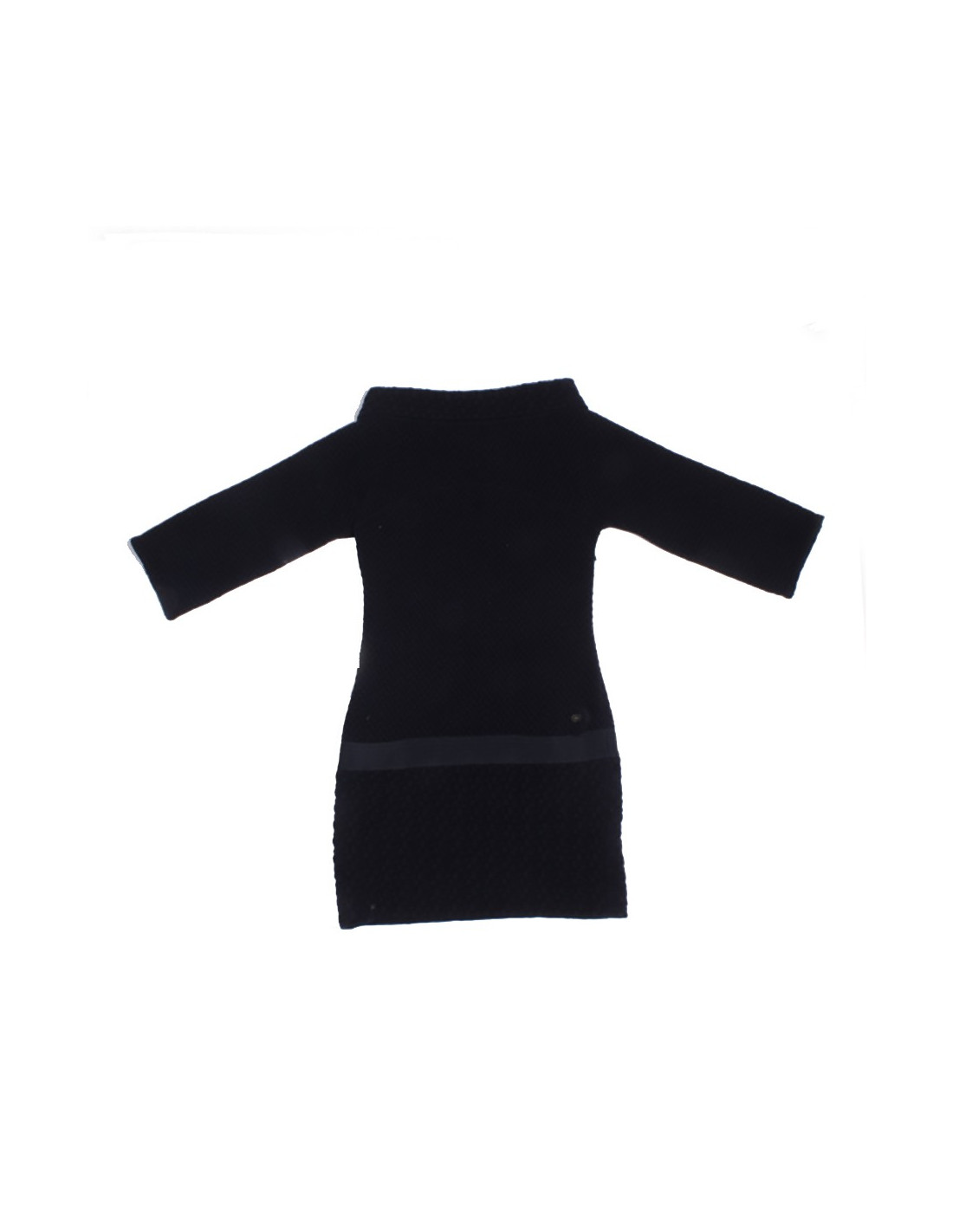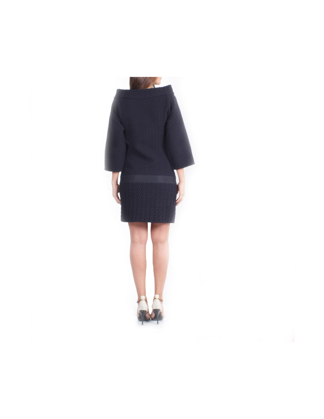 Robe Chanel bleu marine en laine stretch, col bateau à manche 3/4,