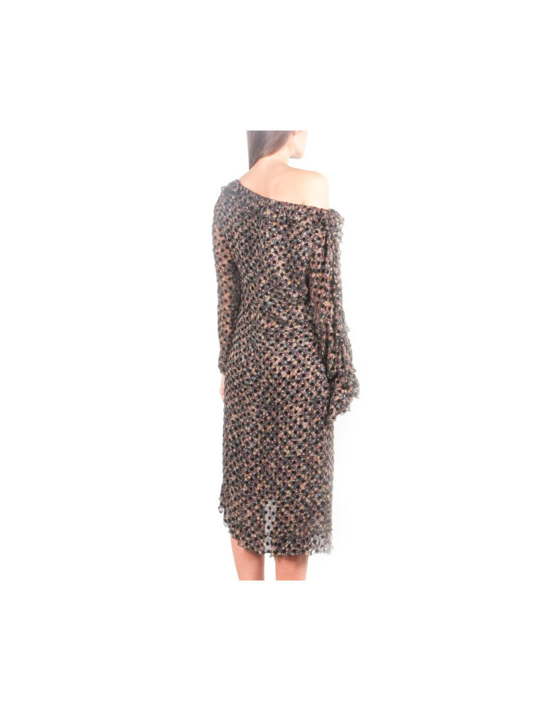 Dress Sonia Rykiel chiffon printed and speckled weight in black velvet, closes with a zip in the back.
