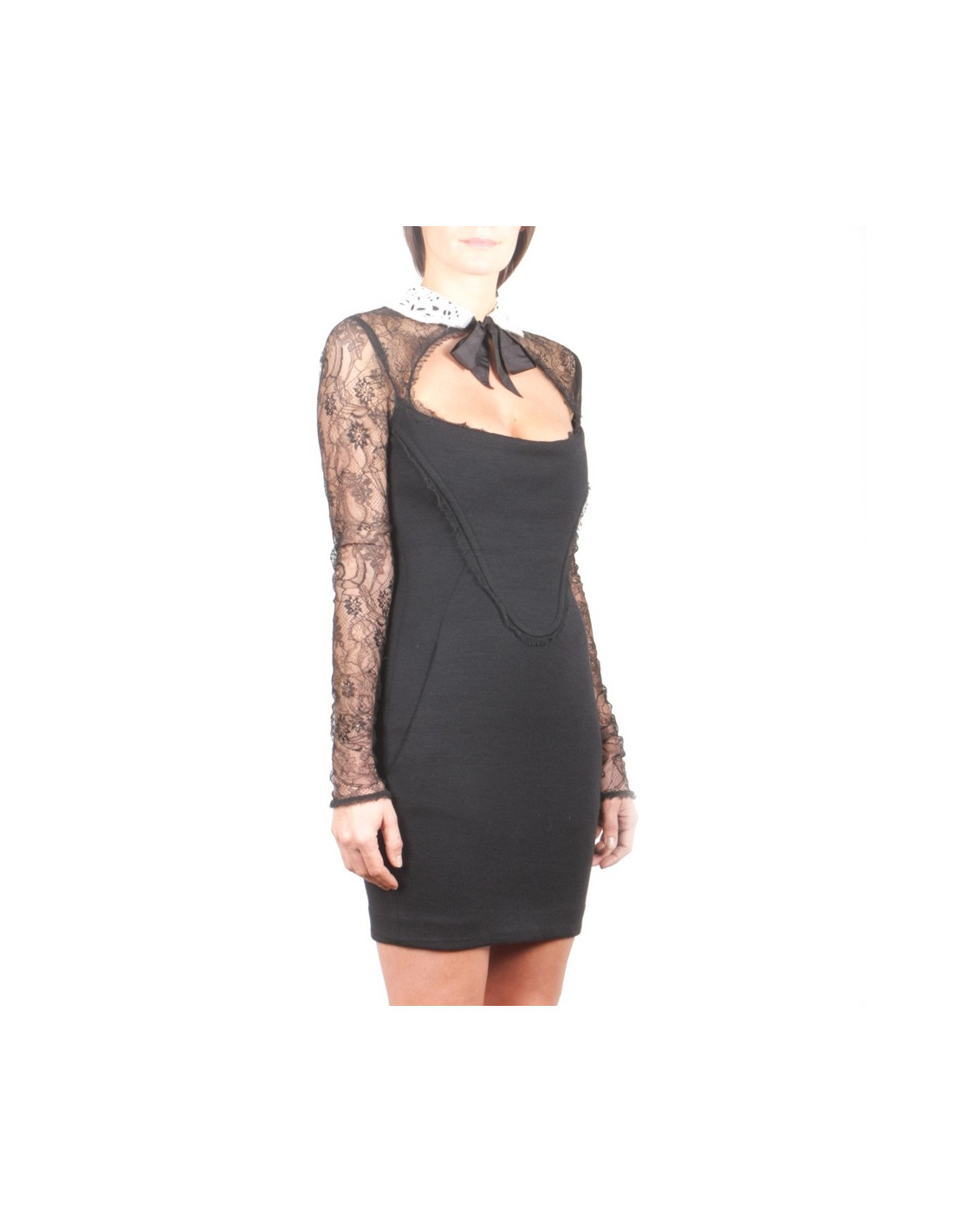 Sublime cocktail dress Emilio Pucci by Peter Dundas Collector in Black wool, way corset at the level of the bust, sleeves black Chantilly lace and chiffon way white eyelet collar is closed by a black silk ribbon. < /p >