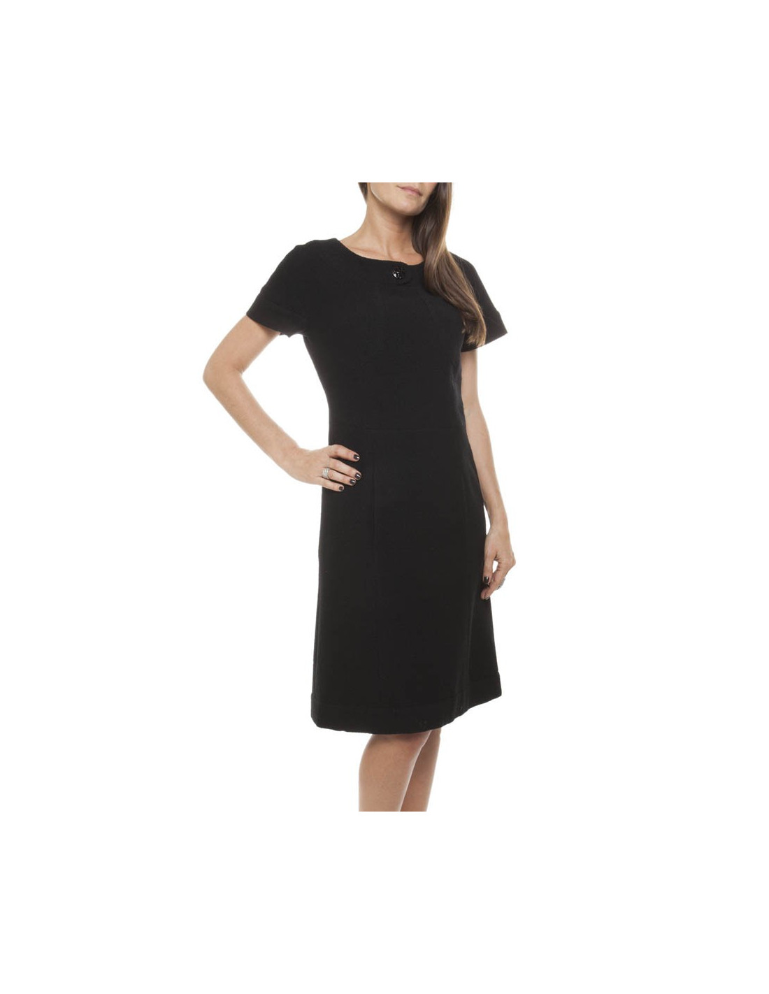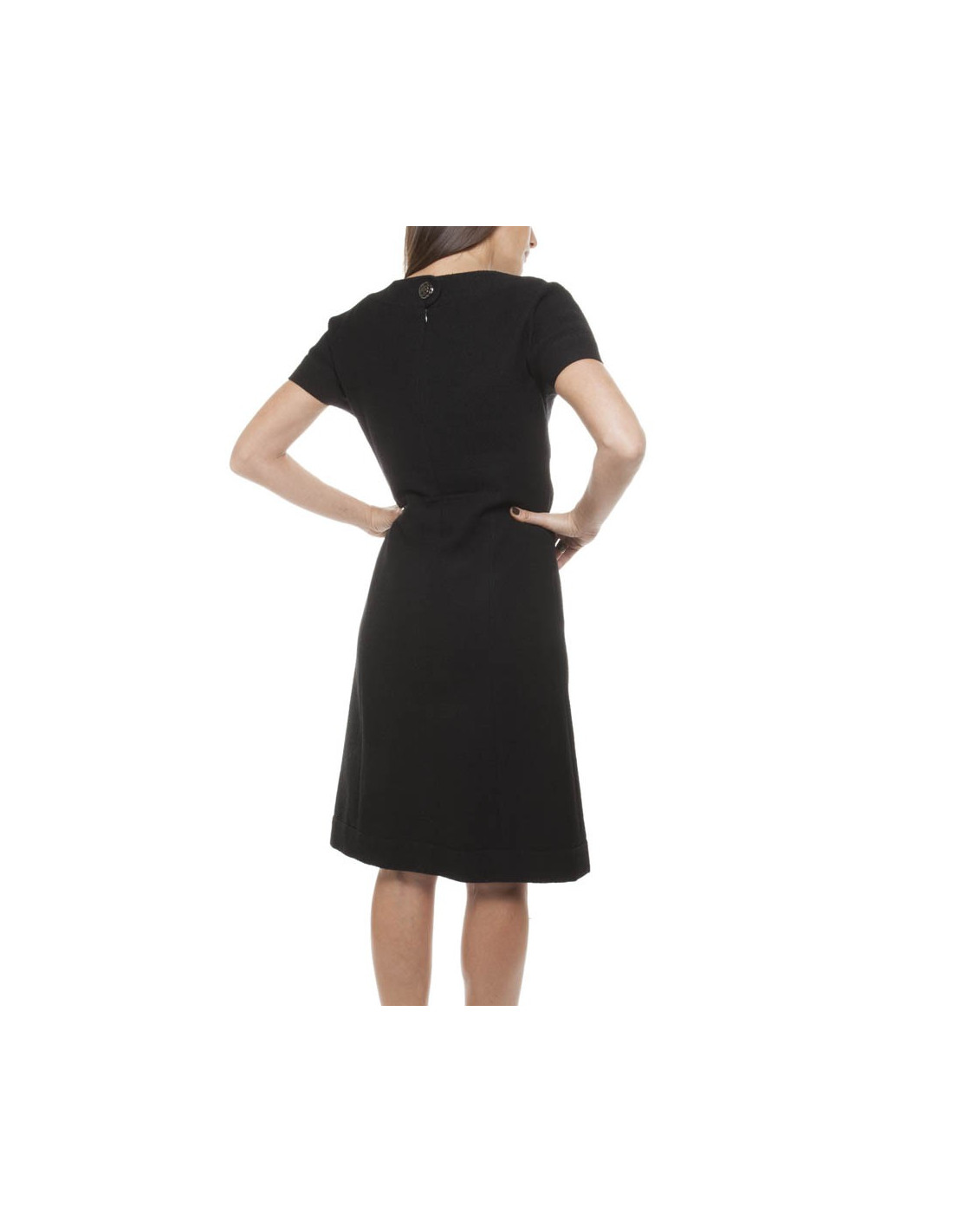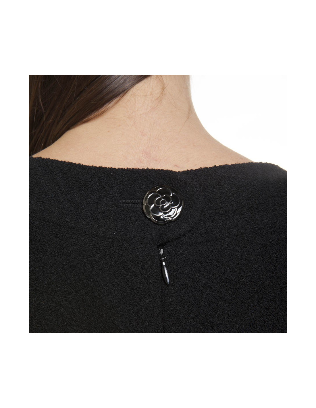 Dress Chanel Black wool with cuts and 2 vertical front pockets. < /p >