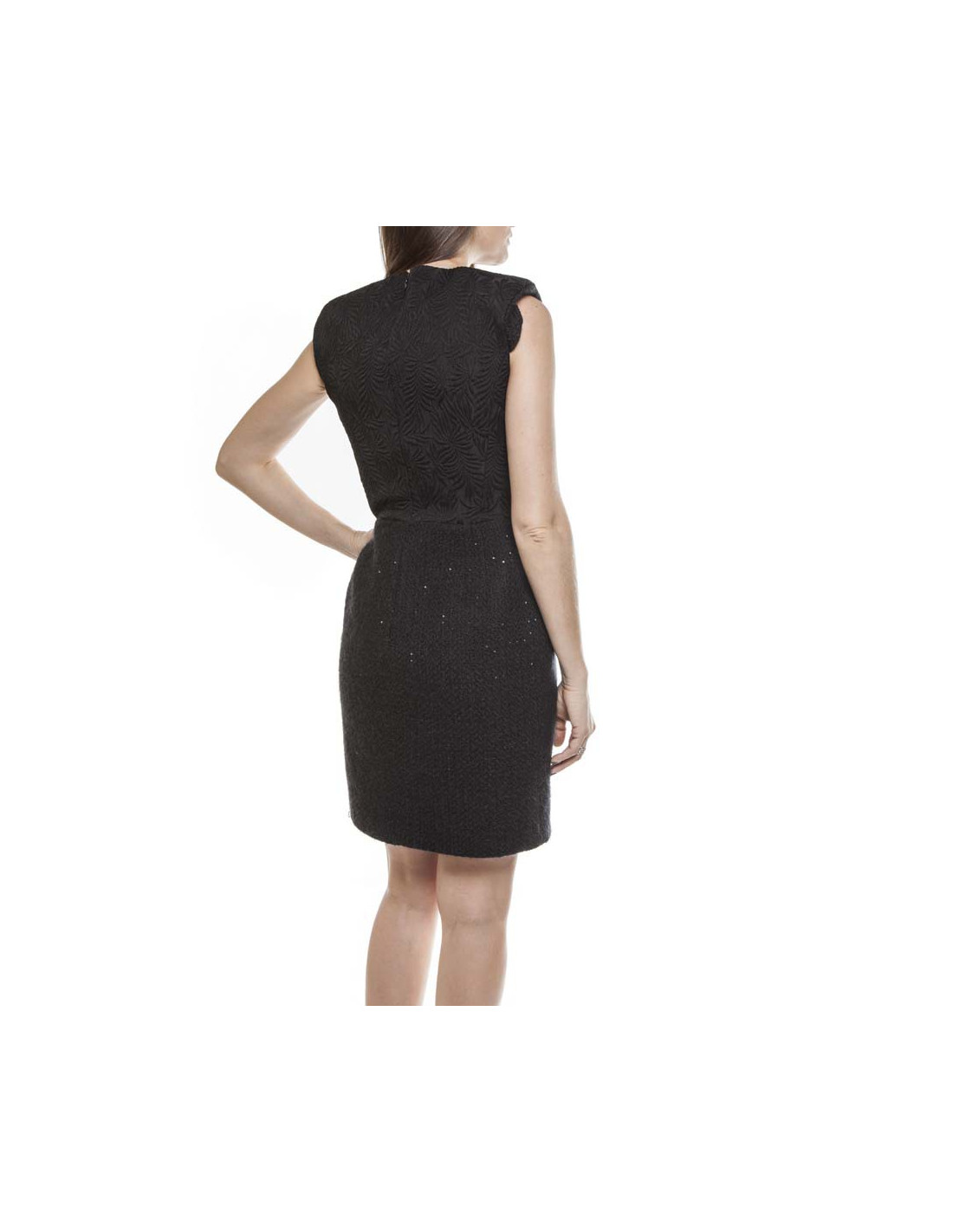 Dress in Black wool Giambatista Valli T36 doubled silk, with round neck and sleeveless.