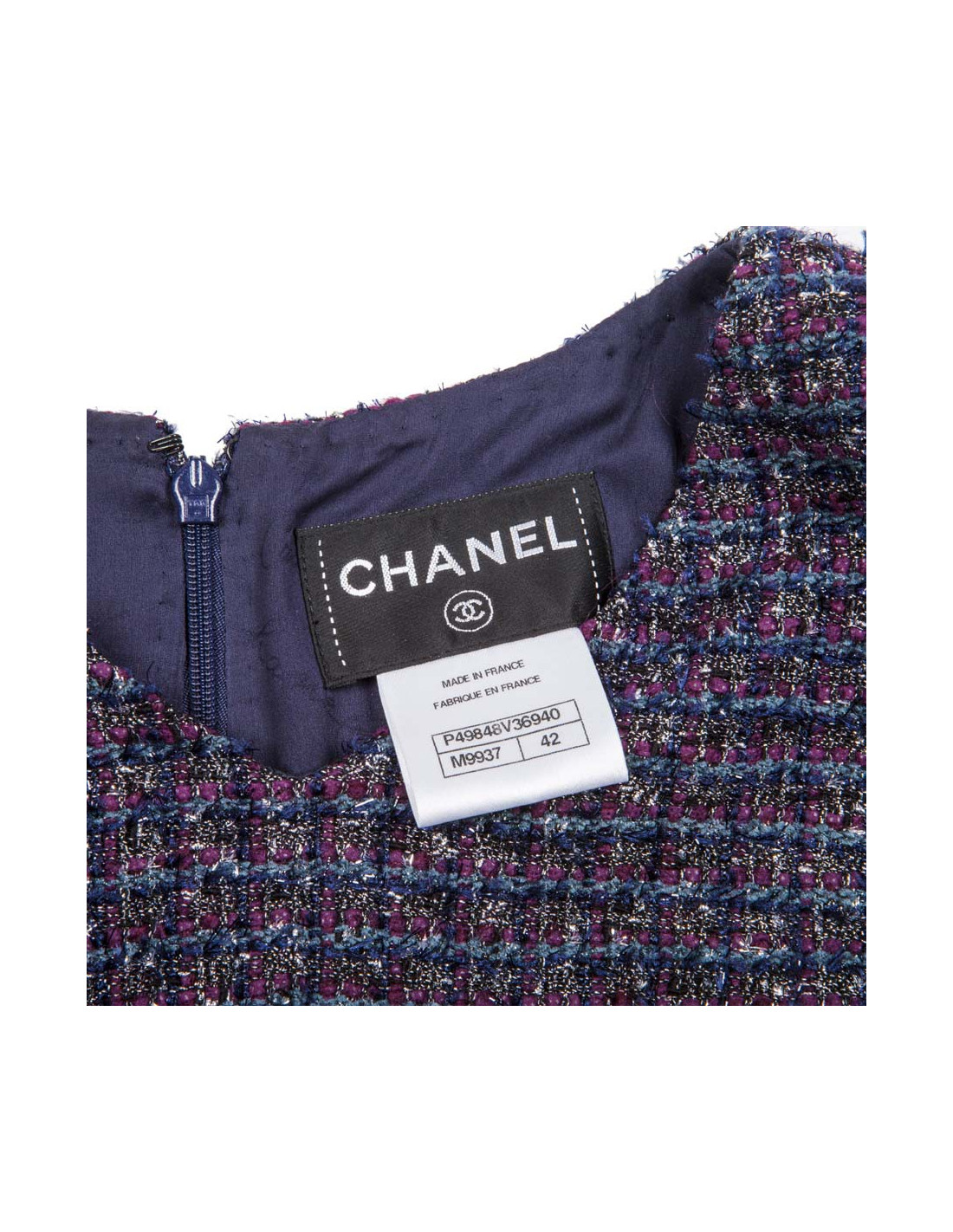 Dress CHANEL tweed purple money T42