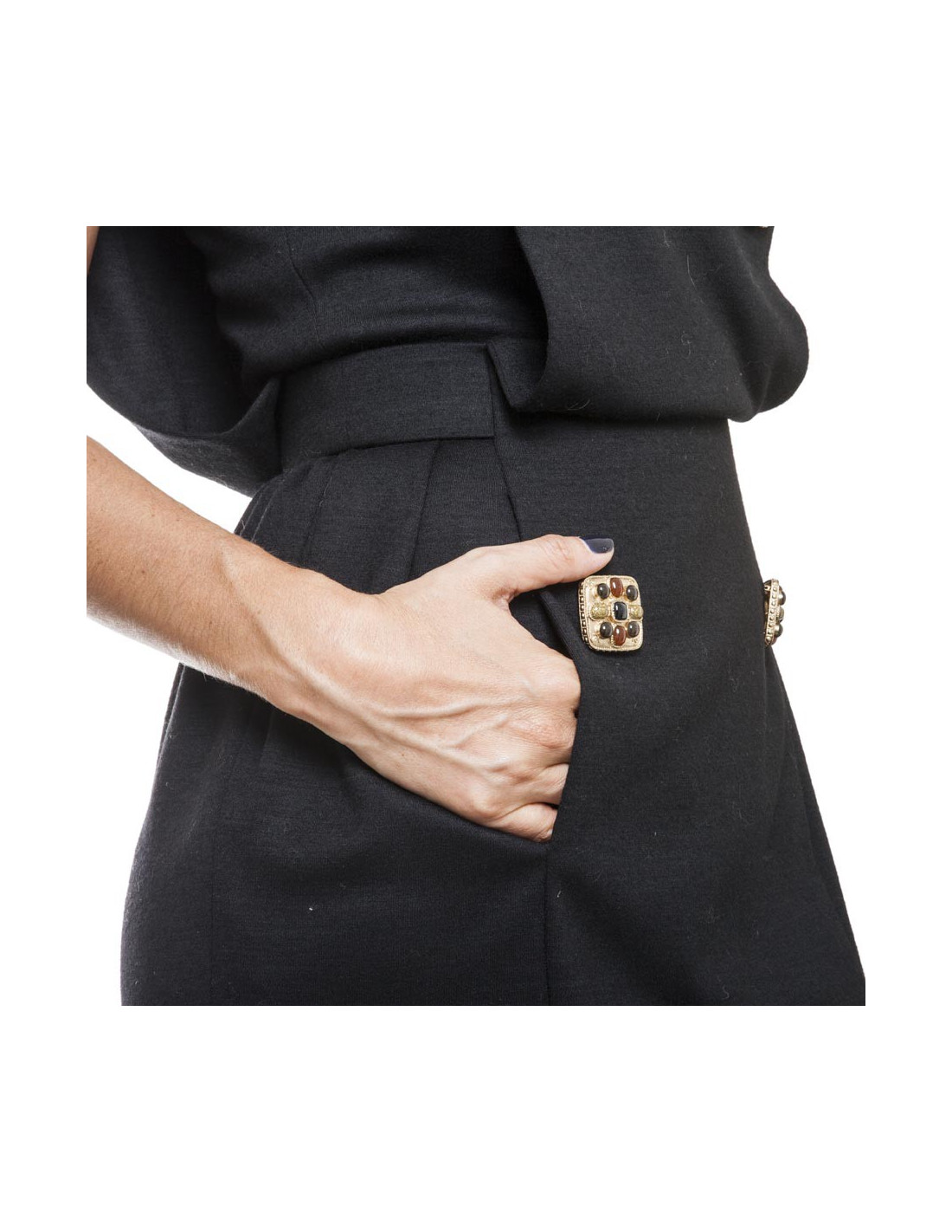 Chanel dress in black jersey T 34. Lined with silk, in very good condition. The dress is adorned with 4 buttons in pale gold color with topaz, brown and gold resin cabochons and signed at the 4 corners of the "CC".